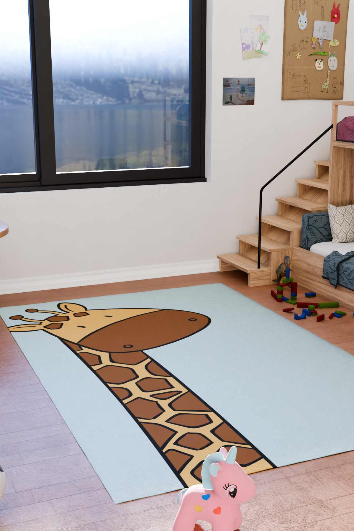 Sevimli Zürafa Çocuk Odası Halısı–Kaymaz Makinede Yıkanabilir Antibakteriyel Bebek Odası Halısı Sevimli Zürafa Çocuk Odası Halısı–Kaymaz Makinede Yıkanabilir Antibakteriyel Bebek Odası Halısı BEÇO0002 160 x 230