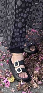 Kadın Taşlı Tokalı Siyah Günlük Plaj Deniz Havuz Terliği Kadın Taşlı Tokalı Siyah Günlük Plaj Deniz Havuz Terliği PLN02 40