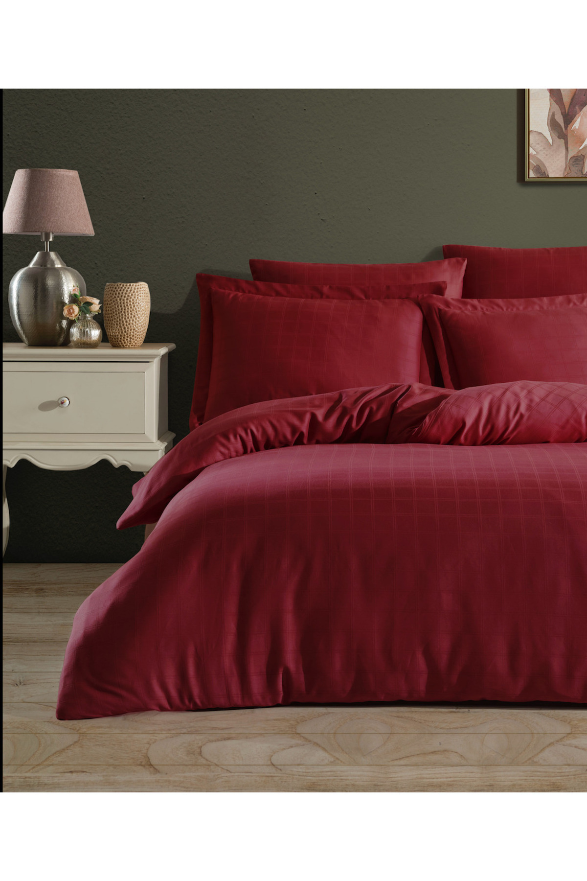 Kareli Saten Çift Kişilik Nevresim Takımı | Bordo Kareli Saten Çift Kişilik Nevresim Takımı | Bordo NZN06020101 تک سایز