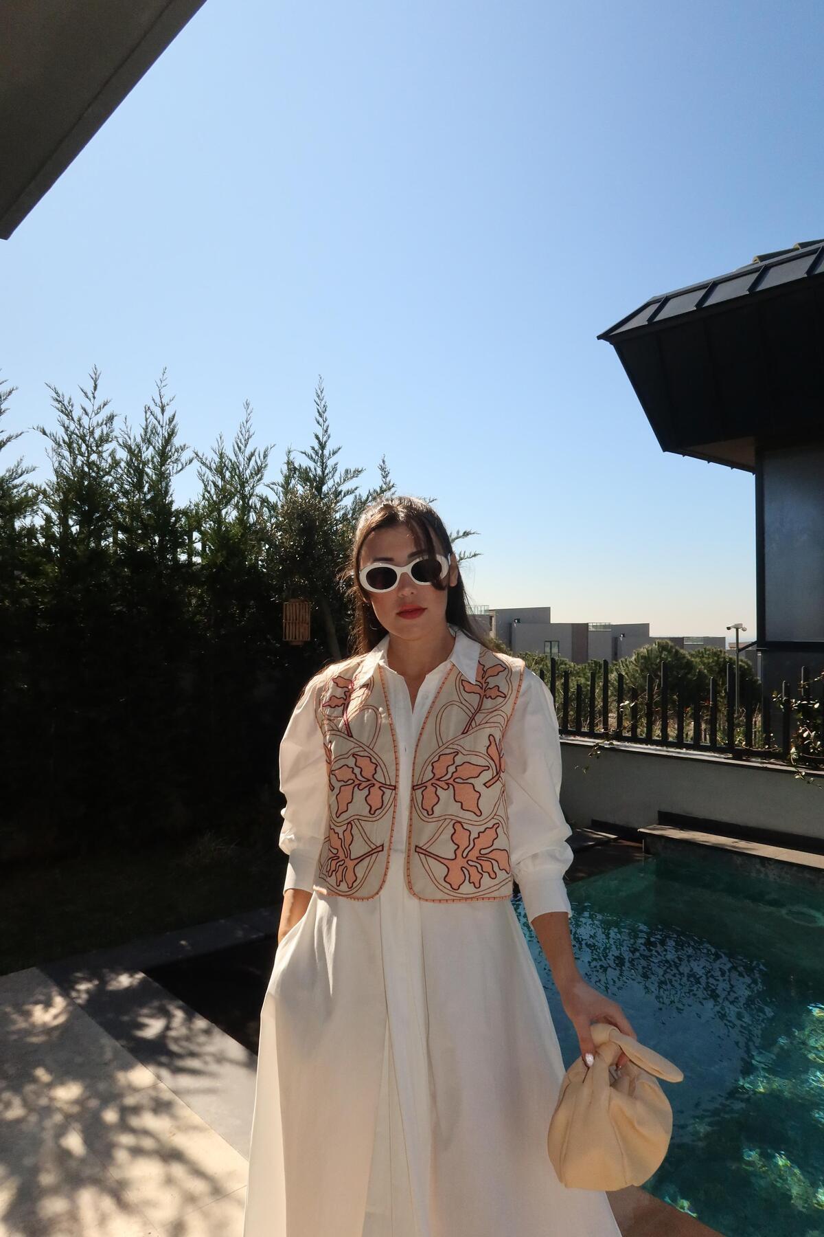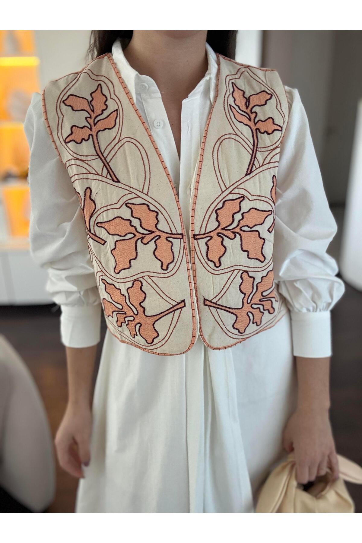Somon Nakışlı Keten Yelek Somon Nakışlı Keten Yelek PRYLK-6830 L