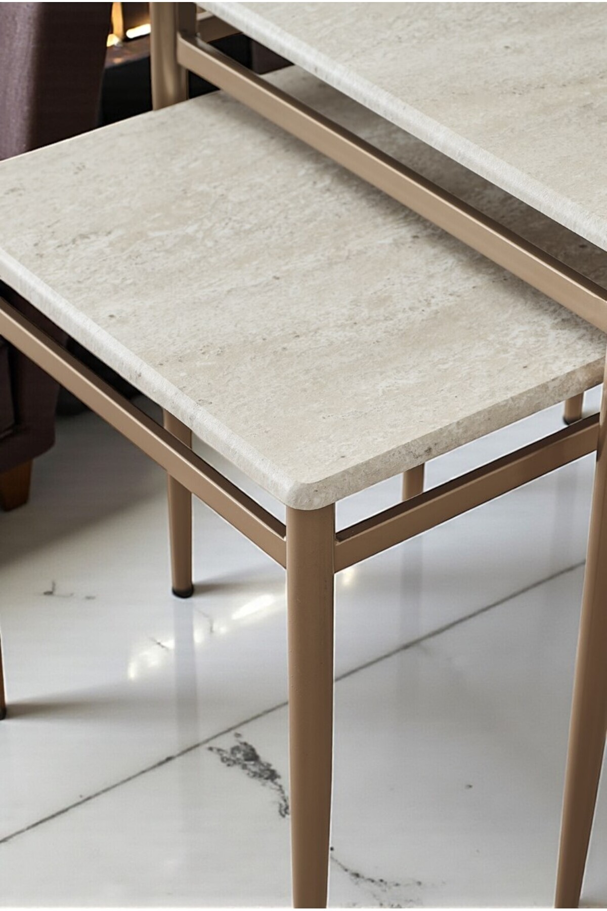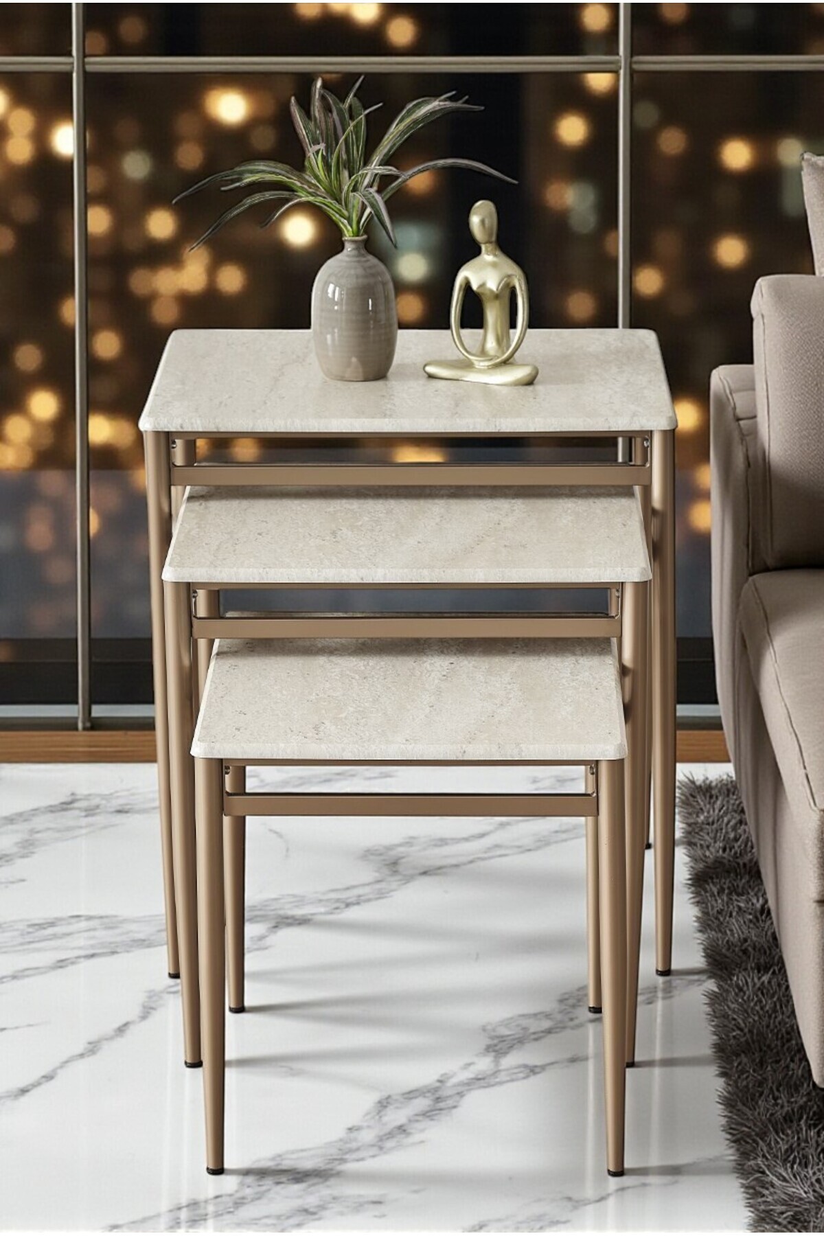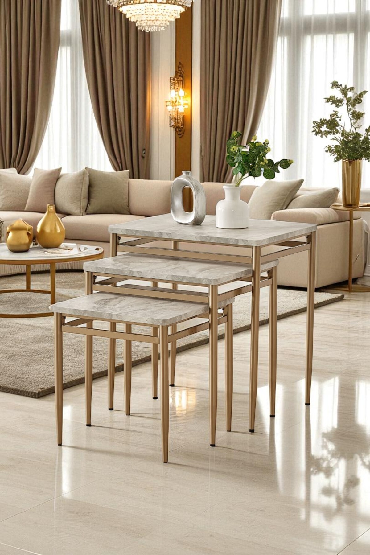 Bazal Serisi Traverten Desen 1. Sınıf Mebran MDF 3’lü Zigon Sehpa Takımı Bronz Ayak Bazal Serisi Traverten Desen 1. Sınıf Mebran MDF 3’lü Zigon Sehpa Takımı Bronz Ayak PRA-12593354-6233 تک سایز