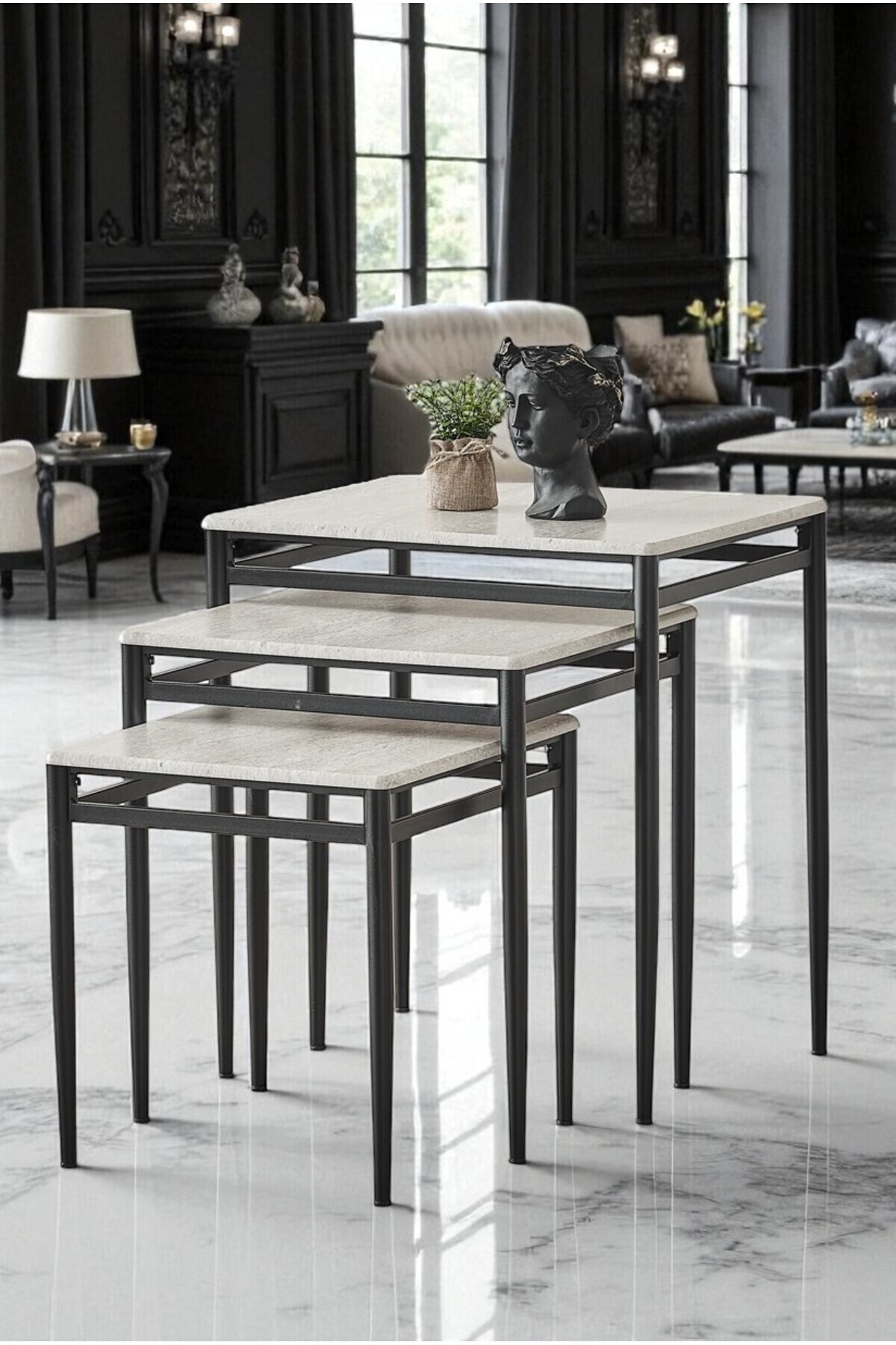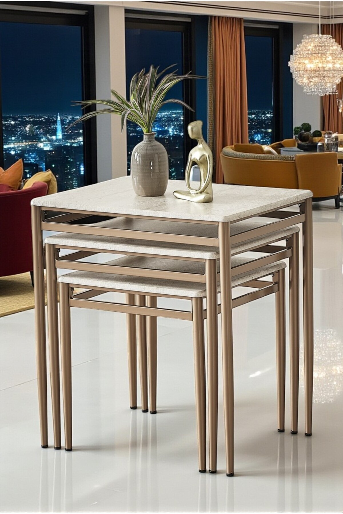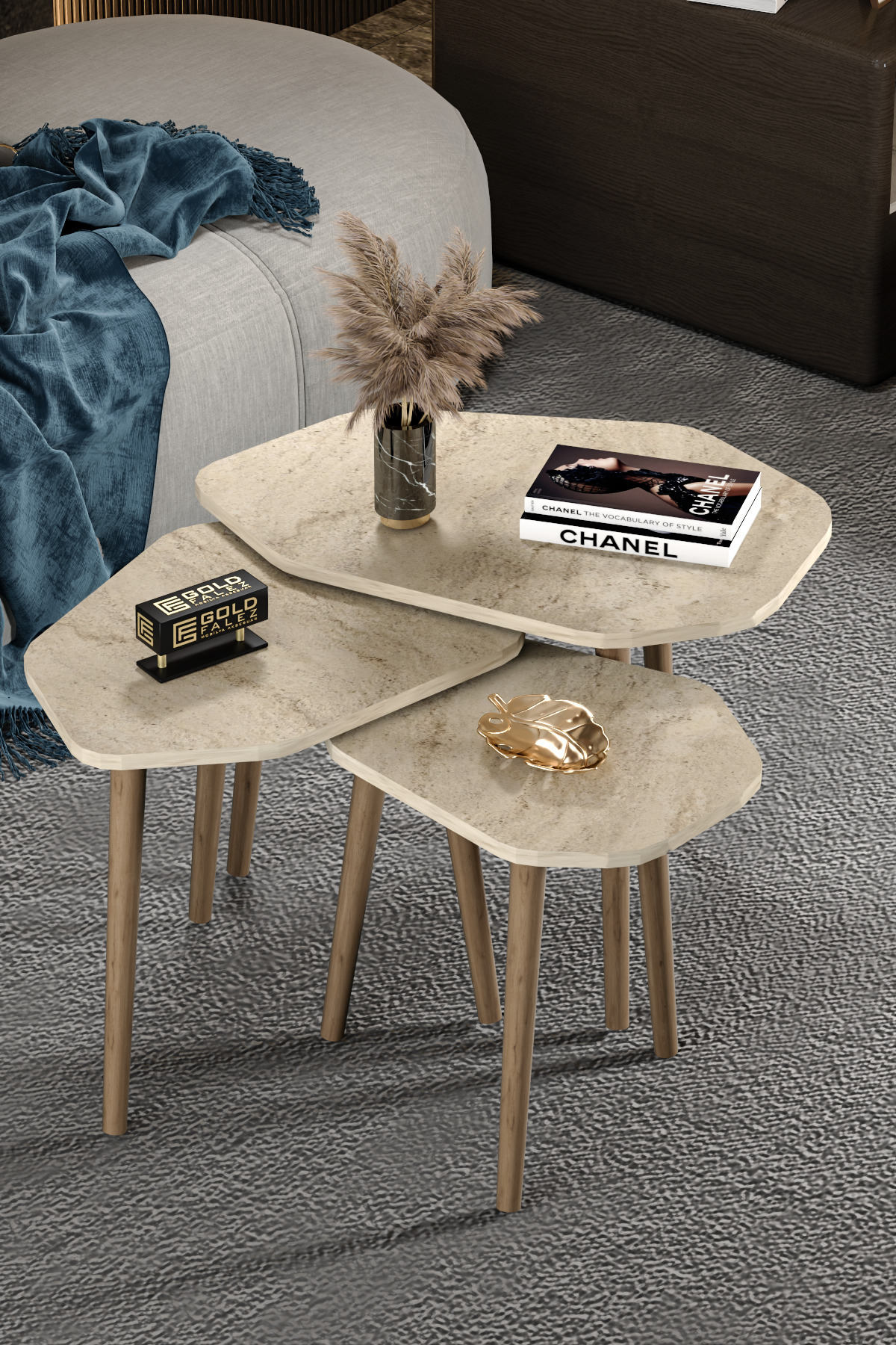 Bazal Serisi Traverten Desen 1. Sınıf Mebran MDF 3’lü Zigon Sehpa Takımı Bronz Ayak Bazal Serisi Traverten Desen 1. Sınıf Mebran MDF 3’lü Zigon Sehpa Takımı Bronz Ayak PRA-12593354-6233 تک سایز