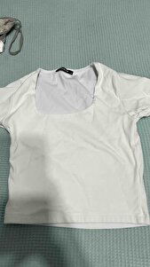 Kadın Kare Yaka Kısa Kollu Yazlık Beyaz Crop Tişört Kadın Kare Yaka Kısa Kollu Yazlık Beyaz Crop Tişört 215-5YB21804TSH XL