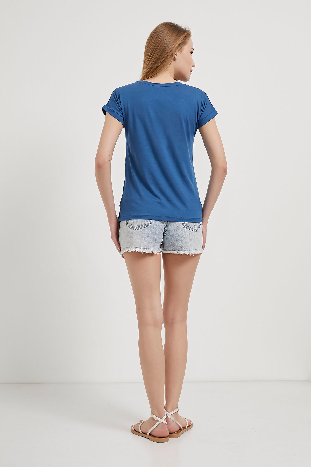 Kadın Bol Yazlık V Yaka Salaş Viskon Mavi Tişört Kadın Bol Yazlık V Yaka Salaş Viskon Mavi Tişört 135-5YB2000TSH L