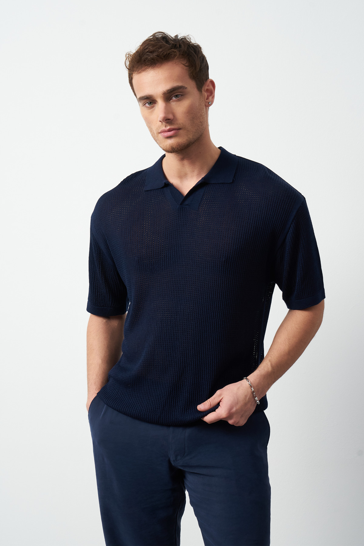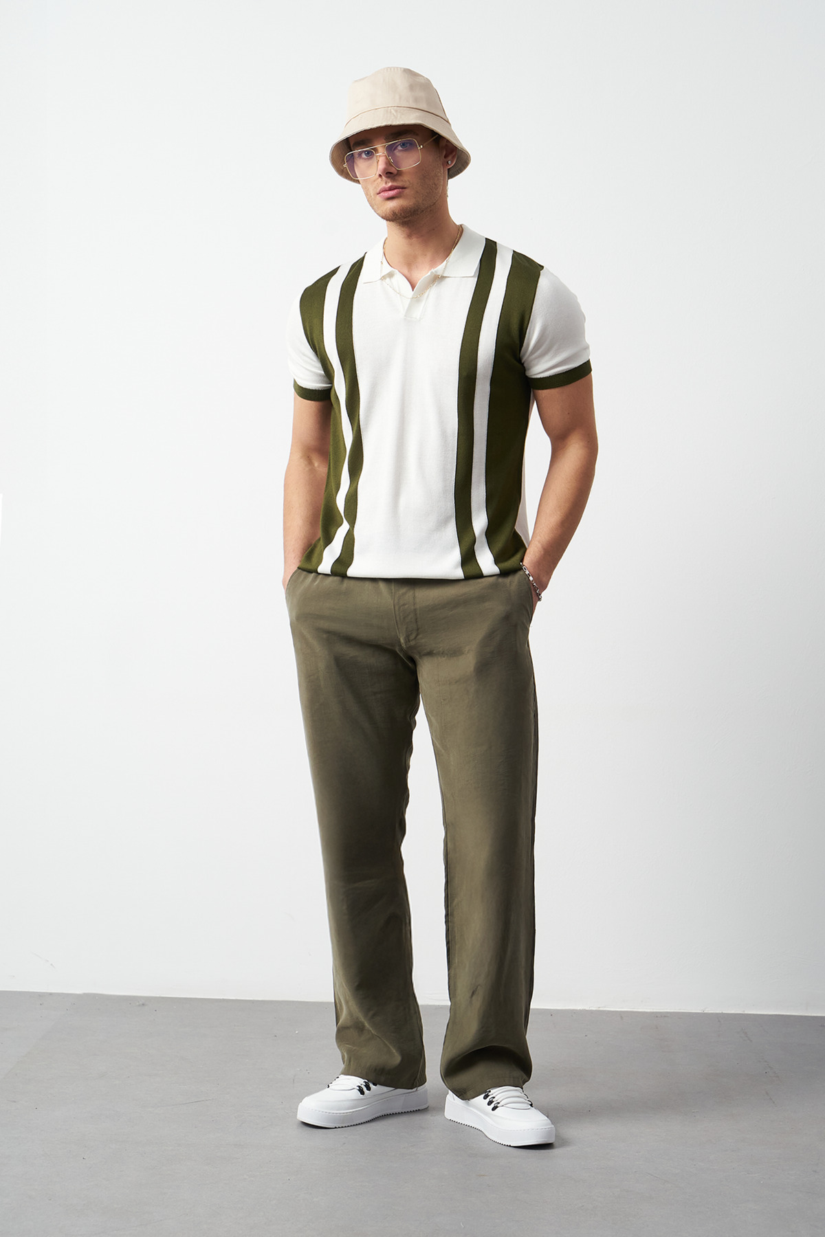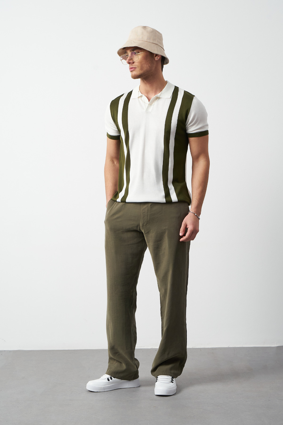 Çizgili Oversize Polo Yaka Triko Erkek T-Shirt Çizgili Oversize Polo Yaka Triko Erkek T-Shirt msfn-406 2XL