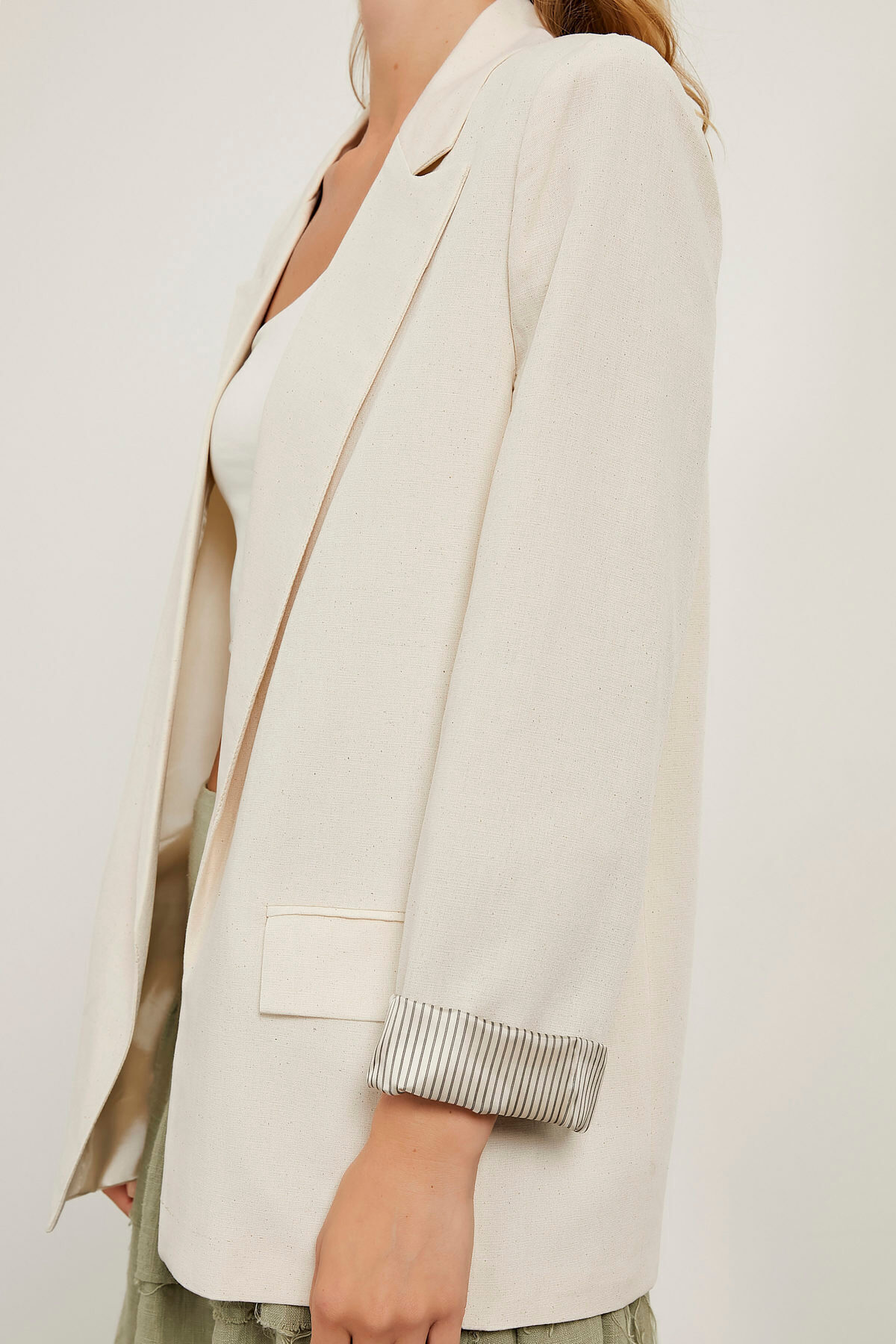Kadın Mevsimlik Kruvaze Yaka Basic Ekru Blazer Ceket Kadın Mevsimlik Kruvaze Yaka Basic Ekru Blazer Ceket 522-4YB7119CKT XL