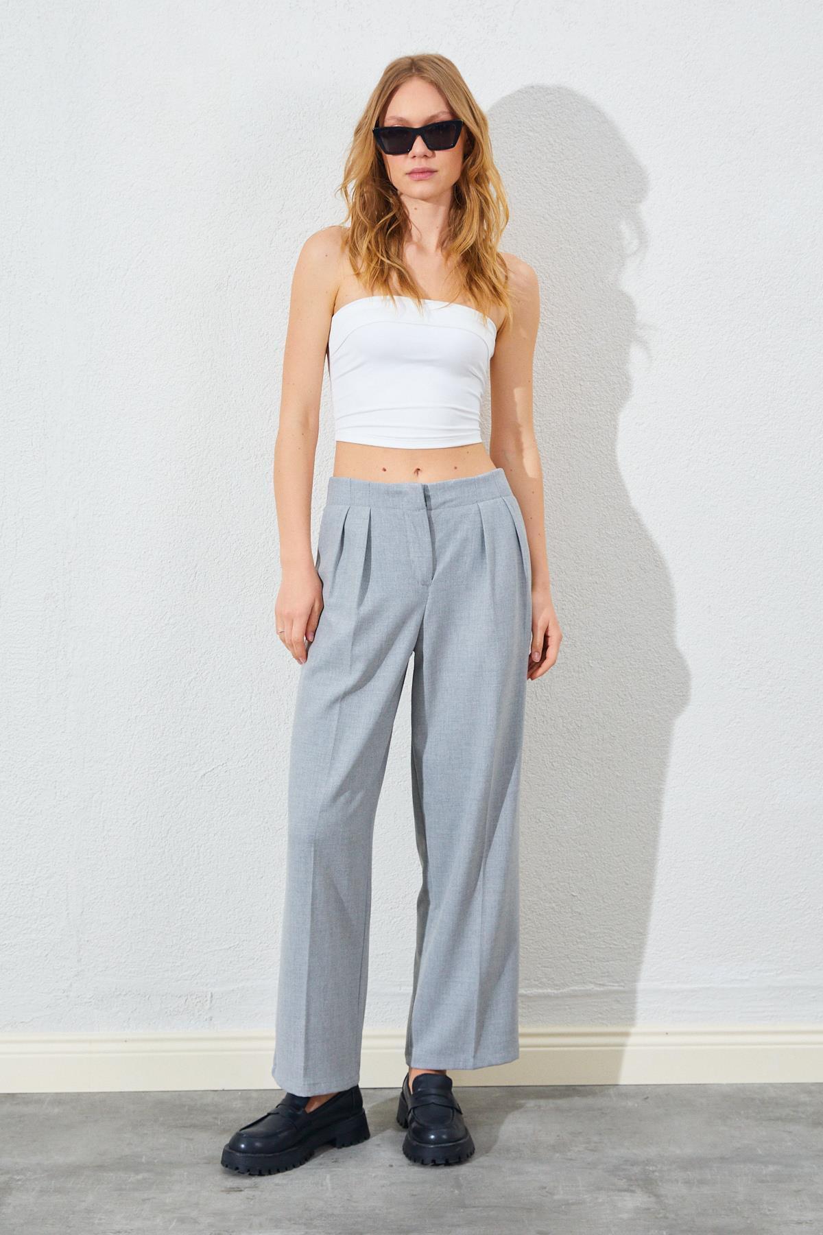 Kadın Gri Yan Düğmeli Poliviskon Pantolon Kadın Gri Yan Düğmeli Poliviskon Pantolon 5YKPNTN3398 L