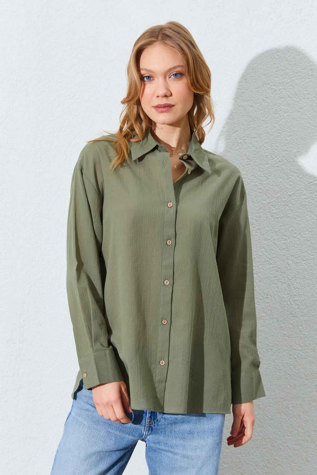 Kadın Mavi Çift Cepli Düşük Kol Crop Gömlek Kadın Mavi Çift Cepli Düşük Kol Crop Gömlek 5YKG16-1448 L