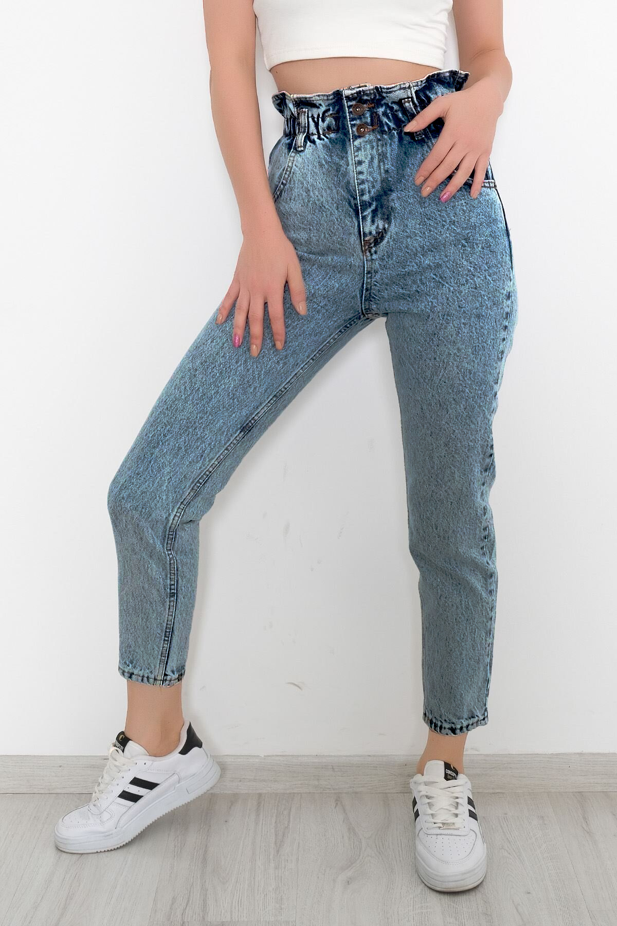 Kadın Yüksek Bel Beli Lastikli Genç Kot Pantolon Kadın Yüksek Bel Beli Lastikli Genç Kot Pantolon 0223 58