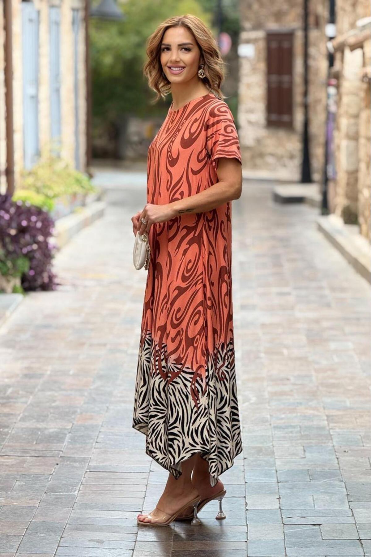 Yavru Ağzı Safari Desen Verev Kesim Elbise Yavru Ağzı Safari Desen Verev Kesim Elbise asimetrik 40/42