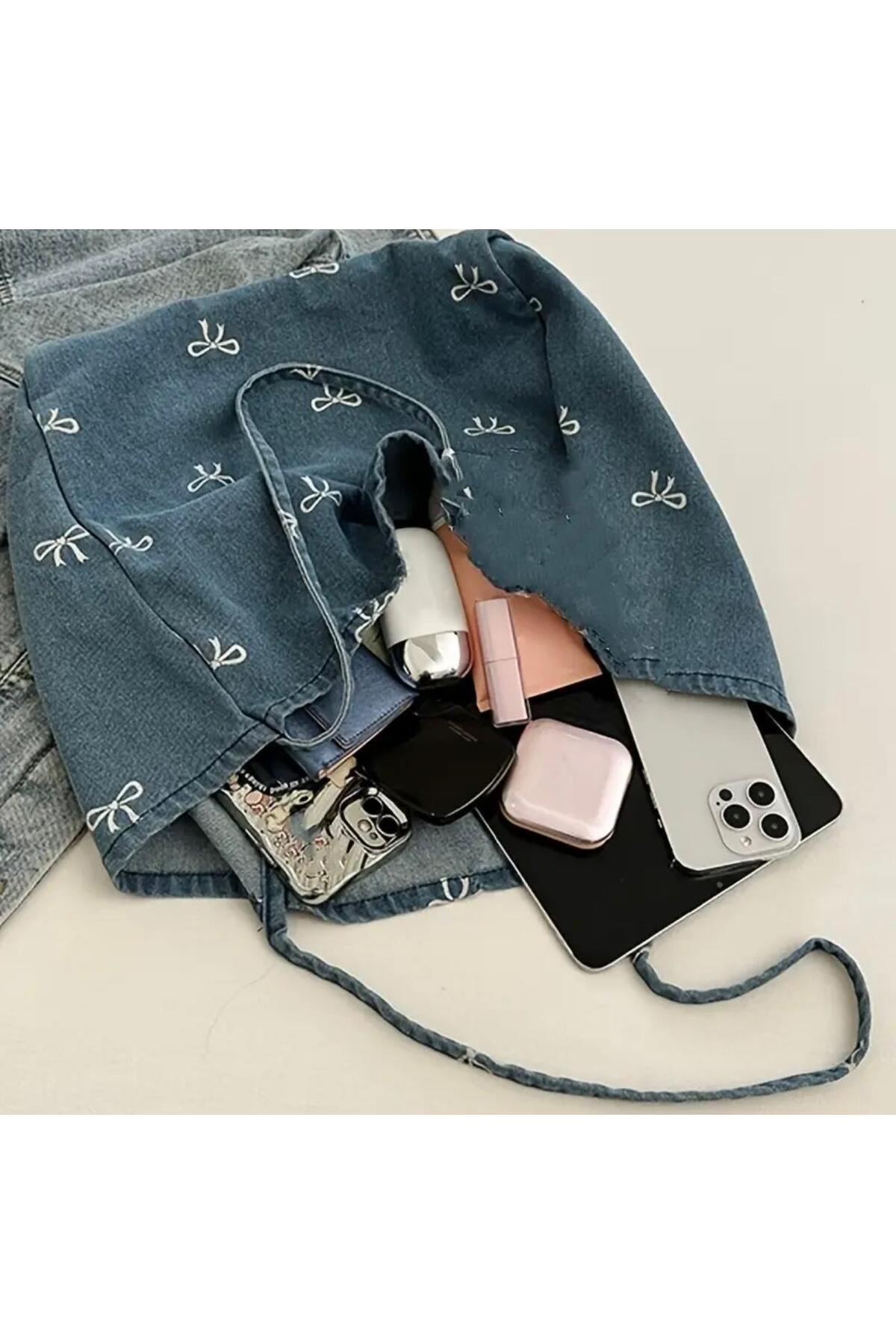 Kadın Jeans Fiyonk Desenli Omuz Çantası Kadın Jeans Fiyonk Desenli Omuz Çantası 249 Standart
