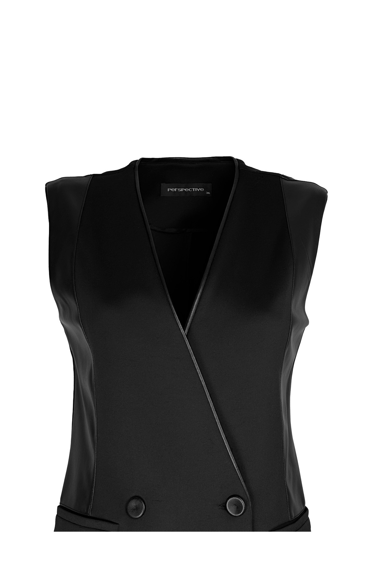 Deri Detaylı Uzun Yelek Deri Detaylı Uzun Yelek 113WP0261 40