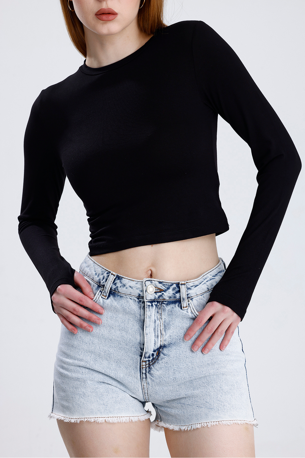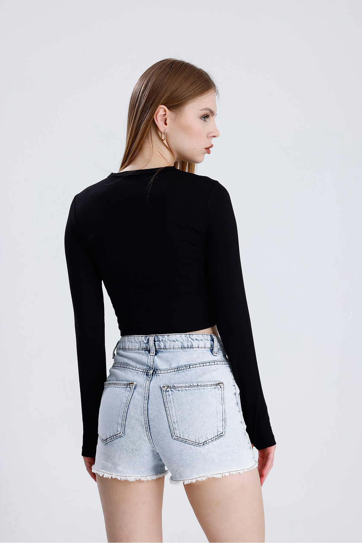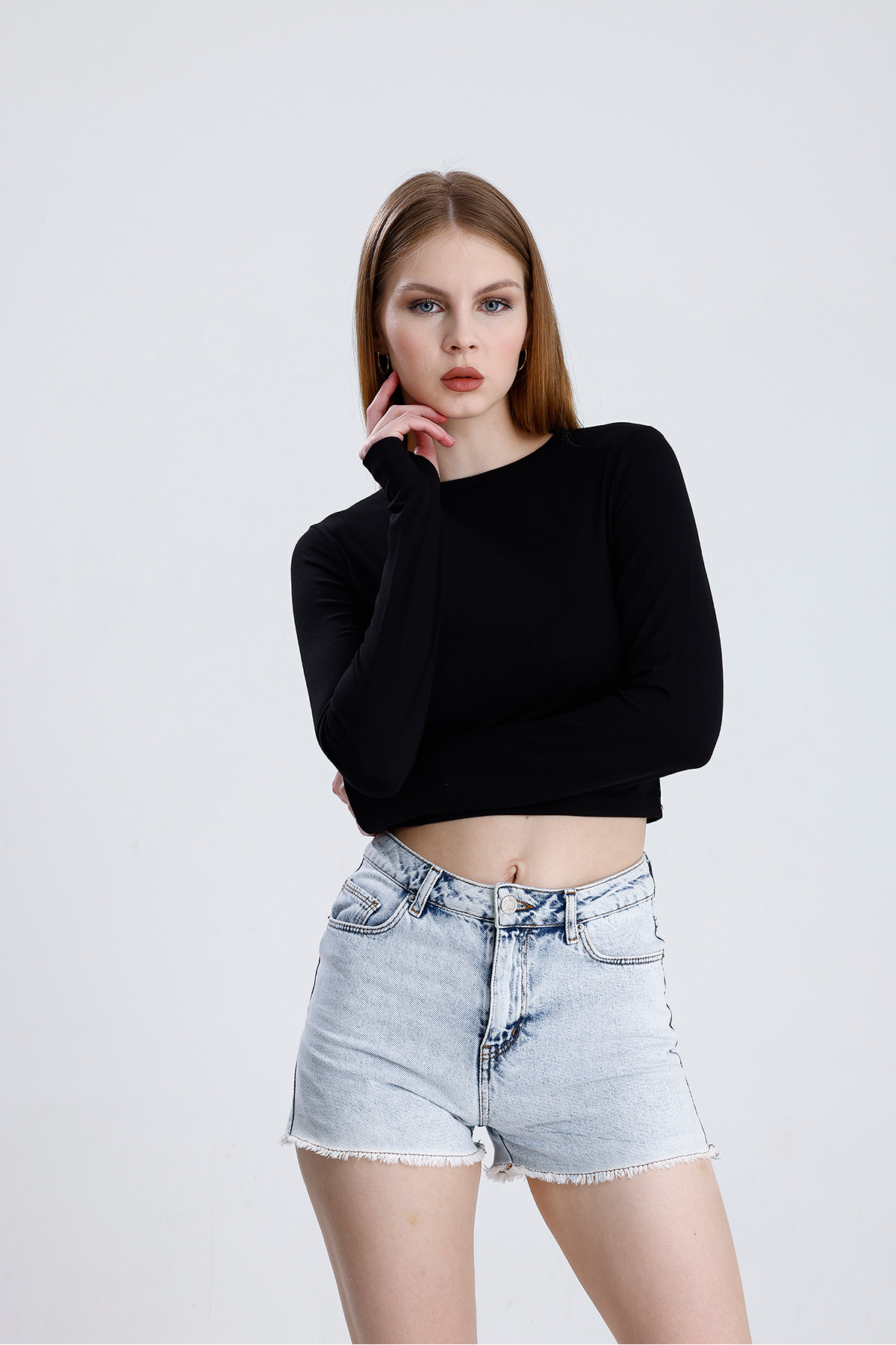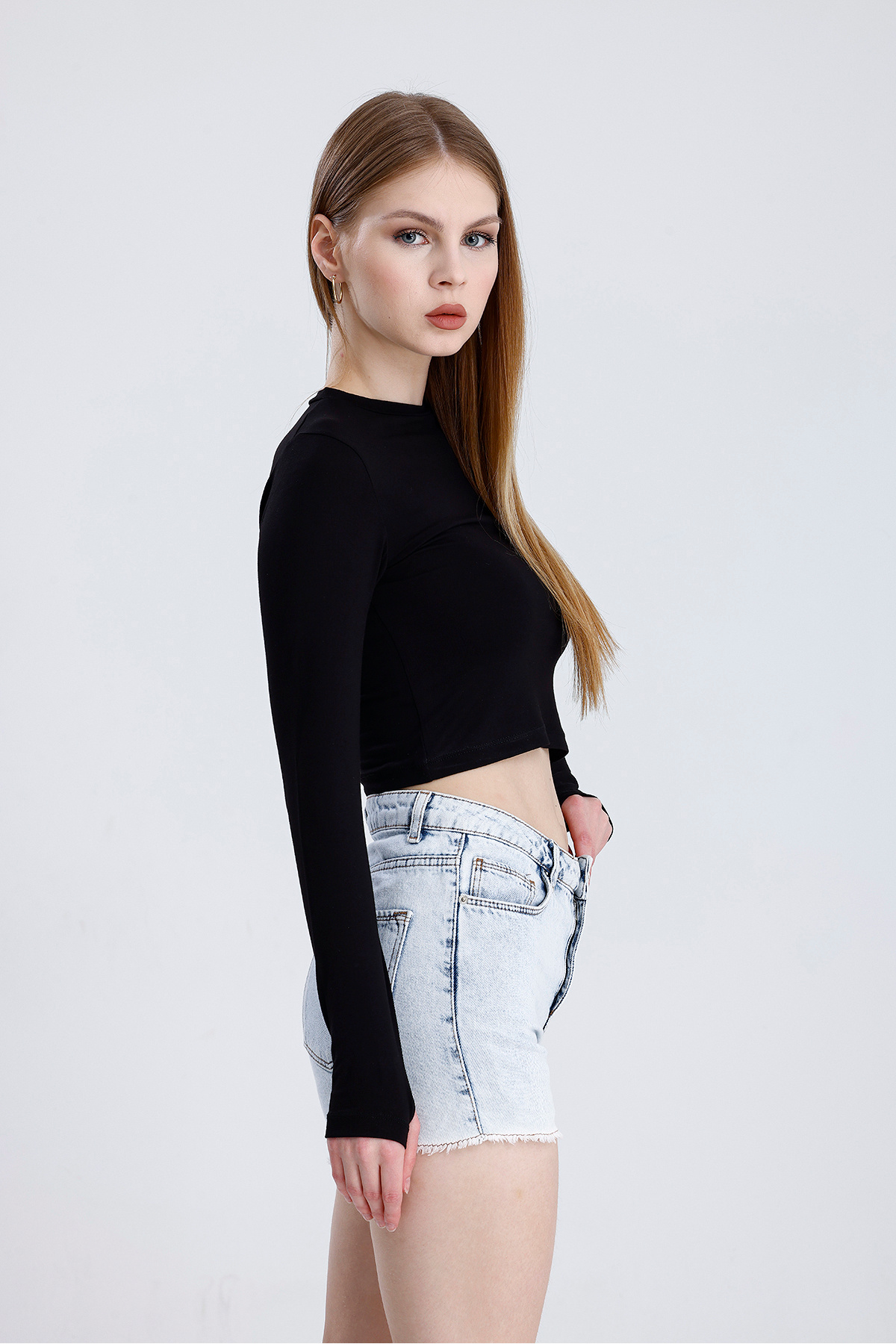 Kadın Crop Siyah Parmak Detaylı Bluz Kadın Crop Siyah Parmak Detaylı Bluz crp100 XL