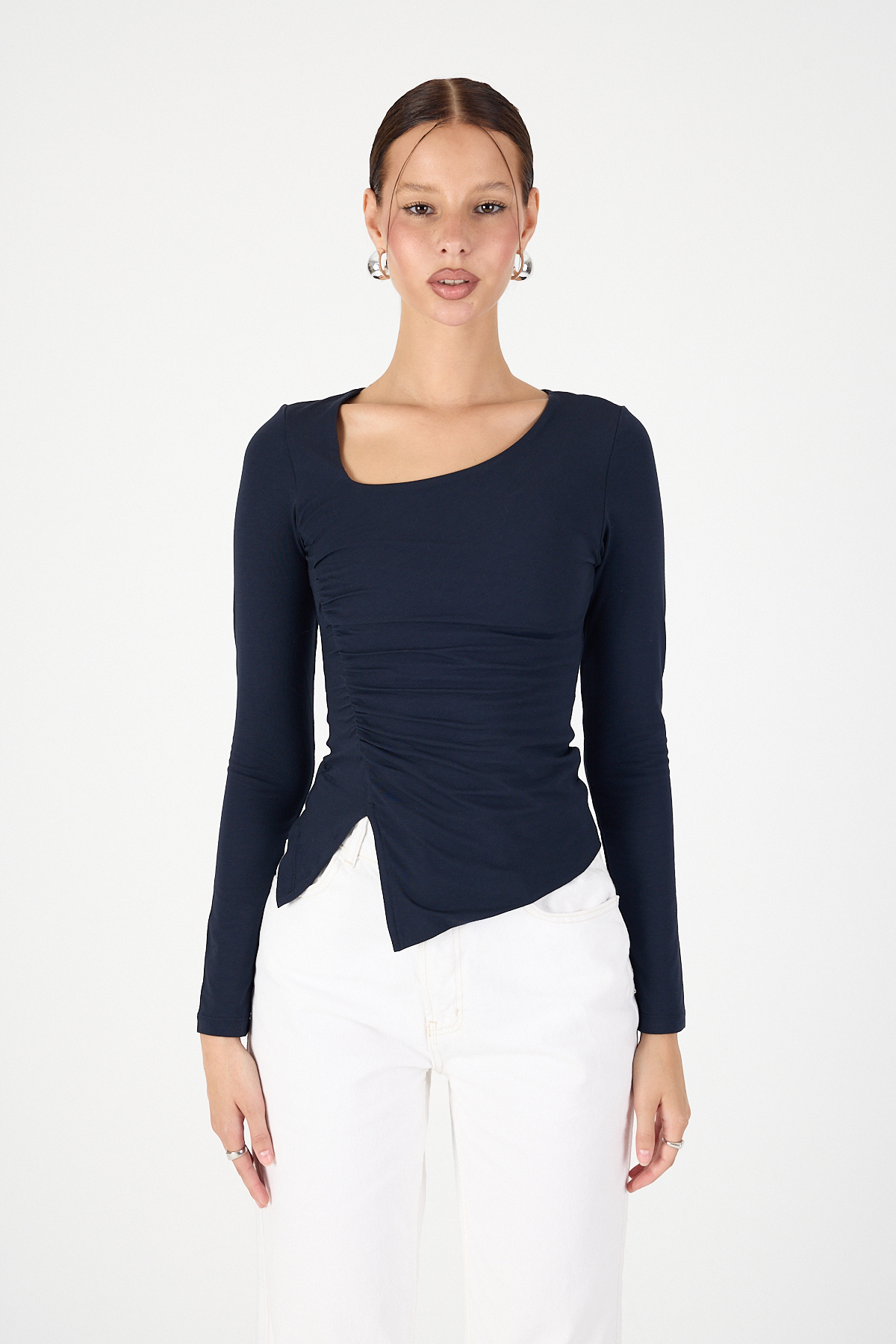 Kadın Balıkçı Yaka Drapeli Sandy Bluz Kadın Balıkçı Yaka Drapeli Sandy Bluz 16445 XL