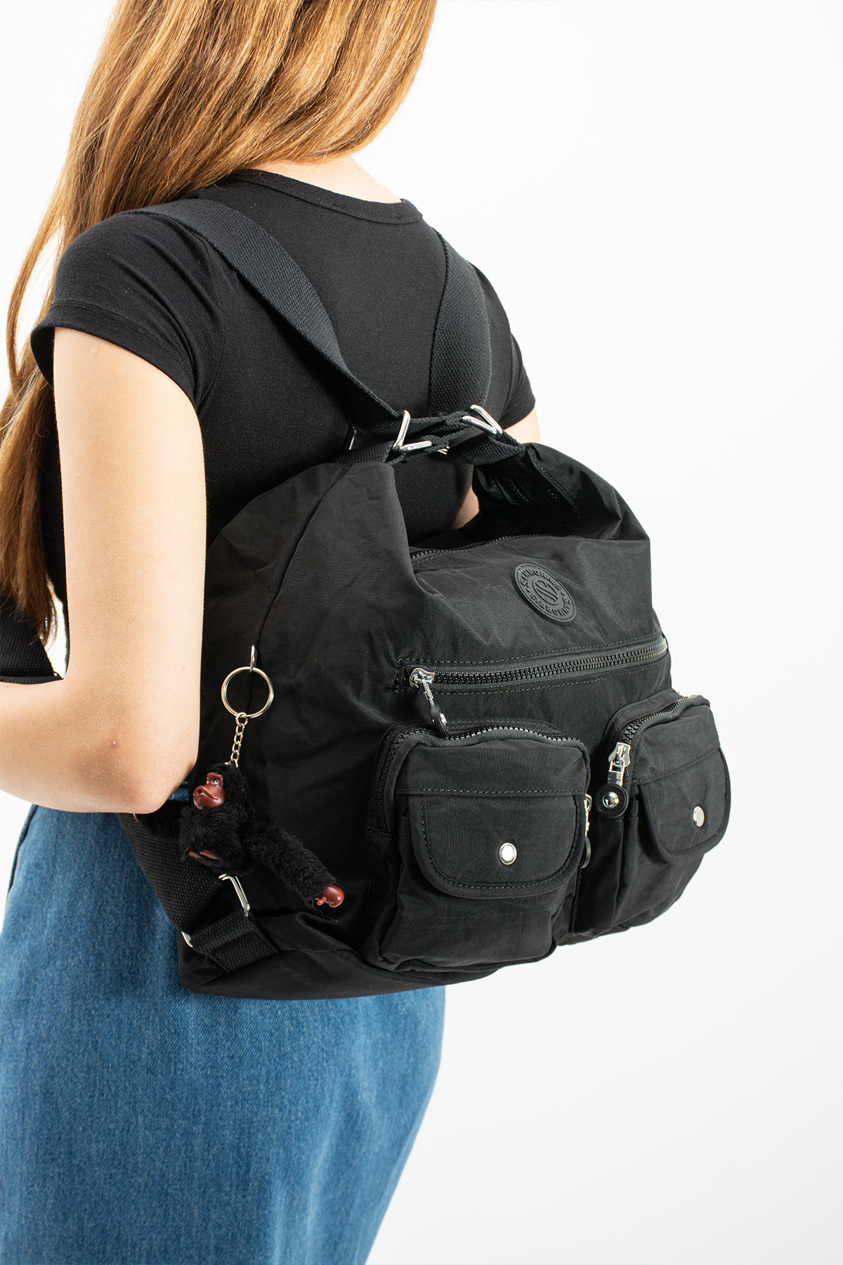 Kadın Çok Cepli Suya Dayanıklı Paraşüt Kılinkır Kumaş Siyah Omuz Çantası ve Sırt Çantası Kadın Çok Cepli Suya Dayanıklı Paraşüt Kılinkır Kumaş Siyah Omuz Çantası ve Sırt Çantası HFSNM03047 Büyük Boy