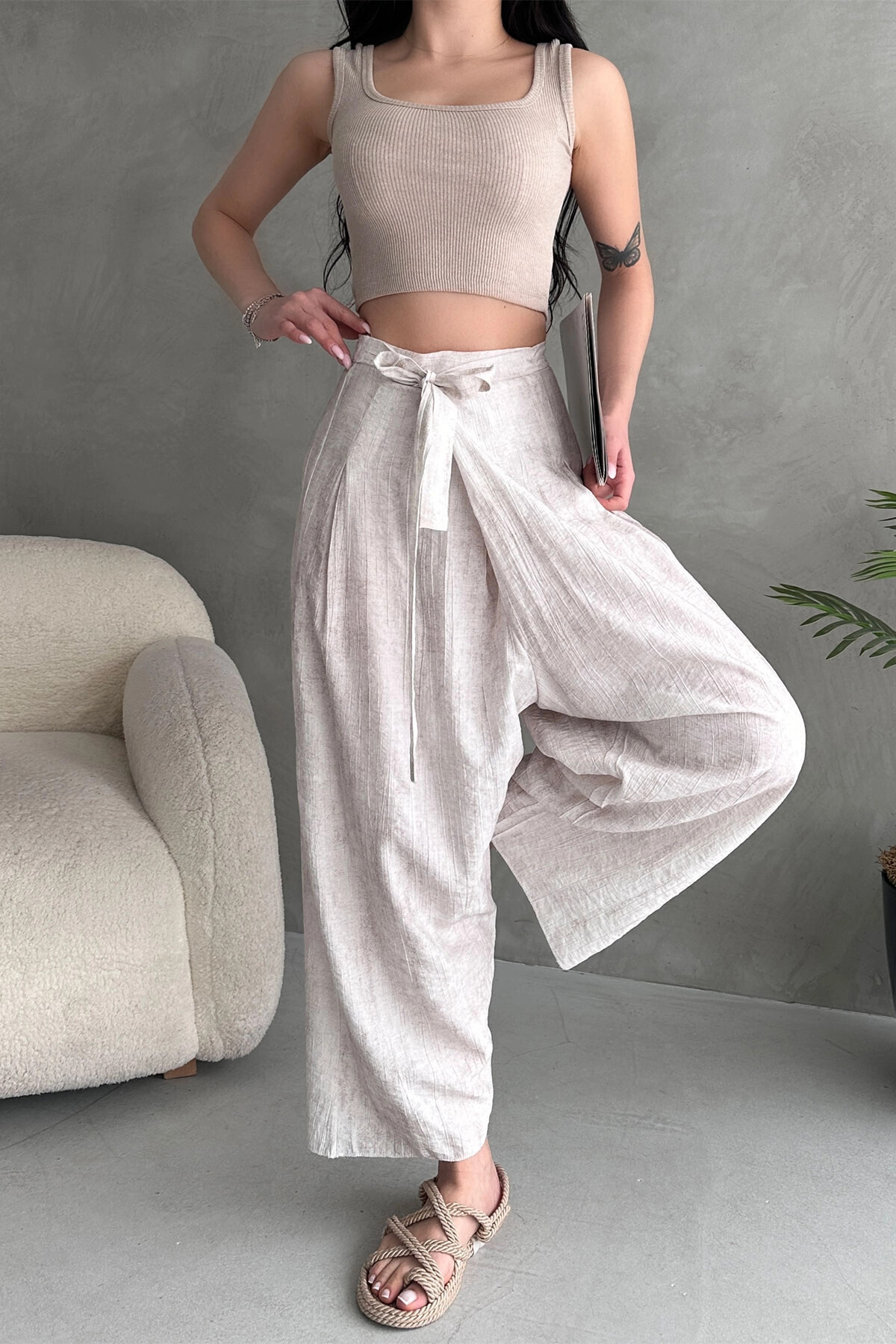 Kadın Krem Bağlamalı Anvelop Kesim Salaş Keten Dokuma Pantolon Bcdf-251108 Kadın Krem Bağlamalı Anvelop Kesim Salaş Keten Dokuma Pantolon Bcdf-251108 BCDF-251108 40