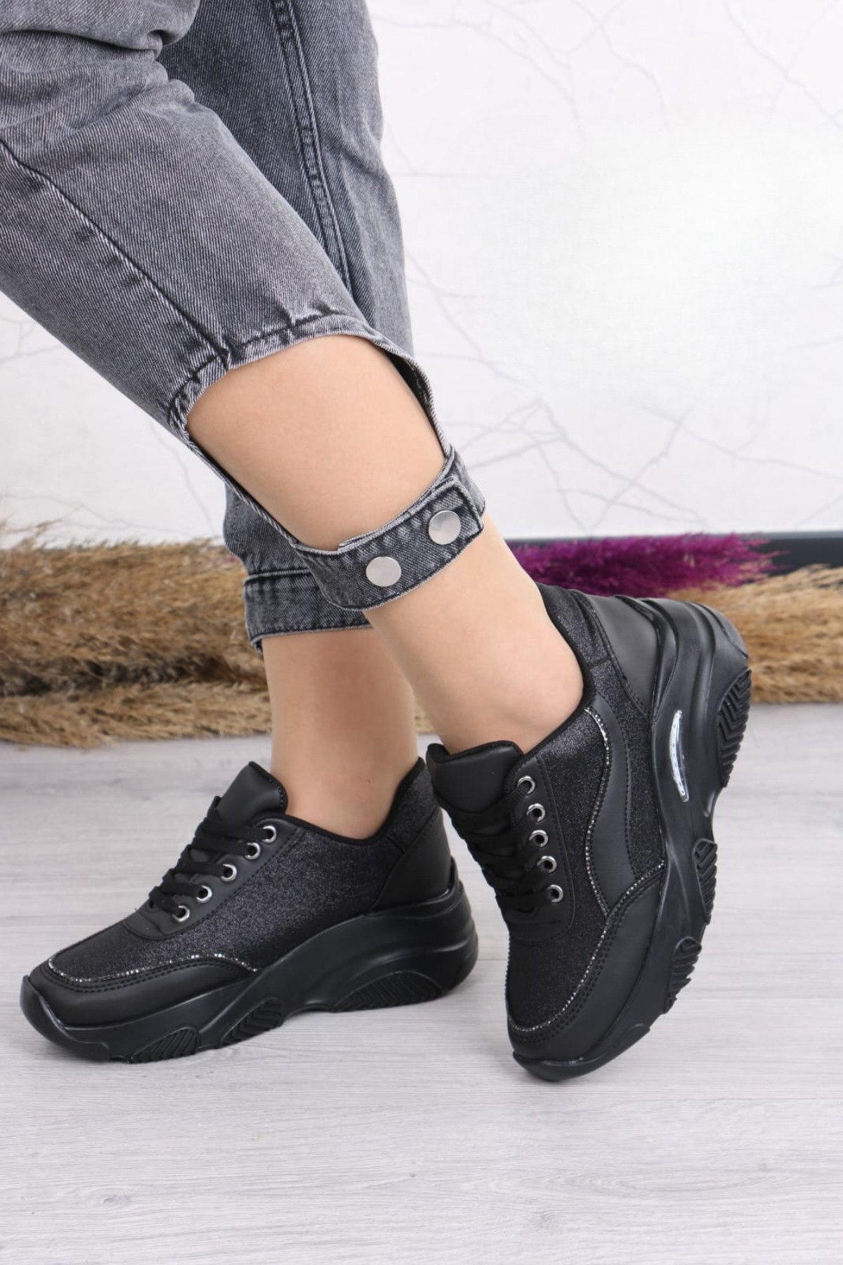 Sade Siyah Erkek Yüksek Taban Günlük Spor Ayakkabı NBR0626 Sade Siyah Erkek Yüksek Taban Günlük Spor Ayakkabı NBR0626 44