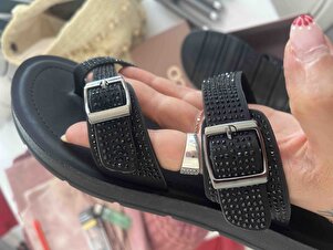 Kadın Siyah Çift Tokalı Taşlı Terlik 25SFE460114 Kadın Siyah Çift Tokalı Taşlı Terlik 25SFE460114 41