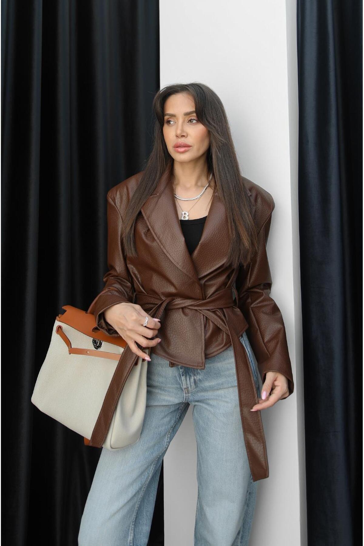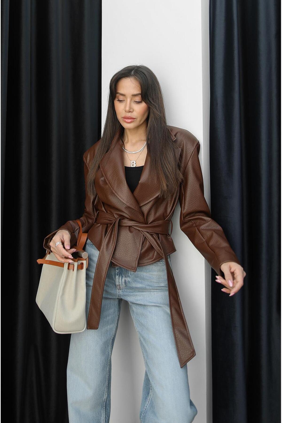 Kahverengi Beli Bağlamalı Vatkalı Deri Ceket Kahverengi Beli Bağlamalı Vatkalı Deri Ceket Hcek594 L