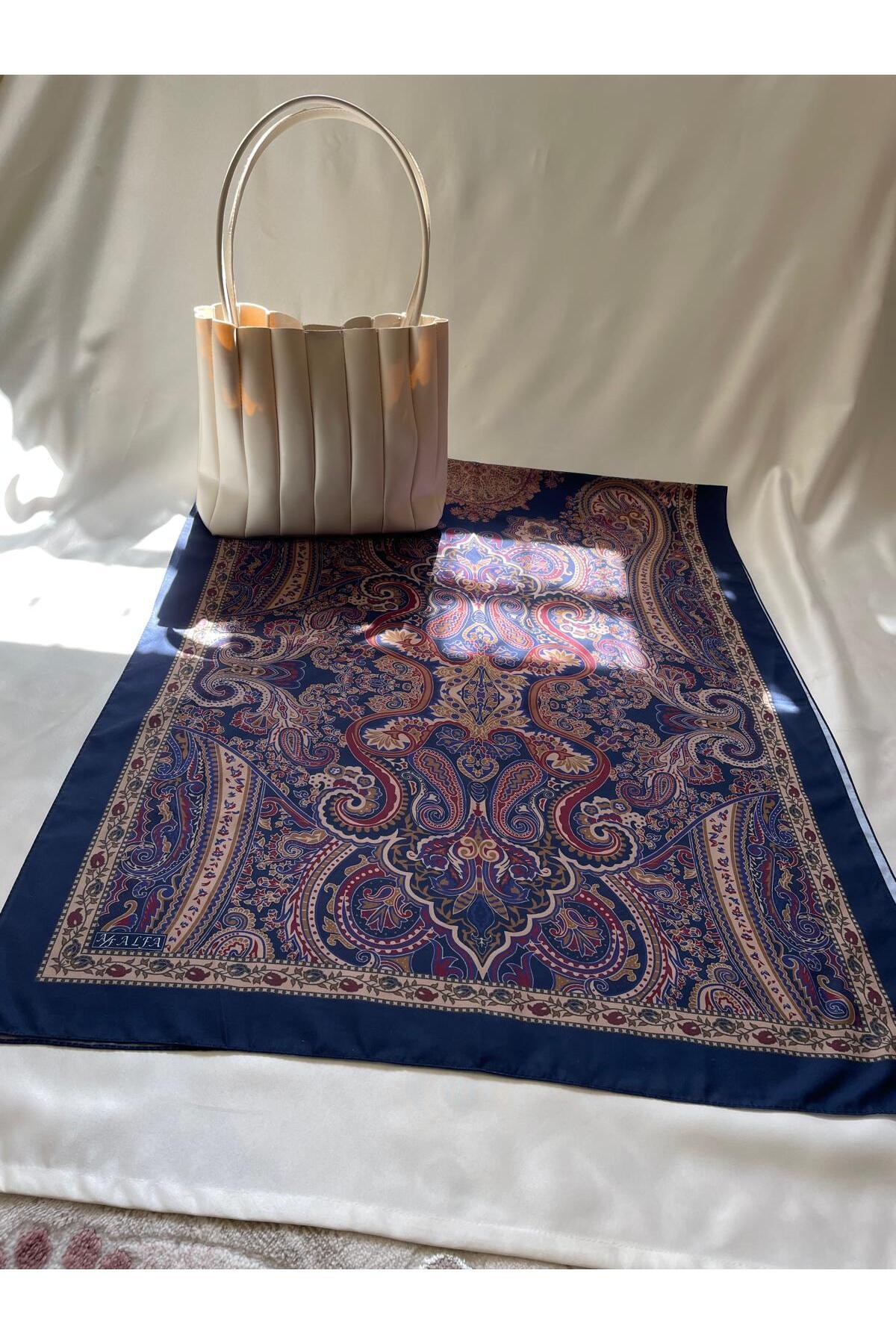 Retro Etnik Desen Soft Pamuk Şal Lacivert Kadın Retro Etnik Desen Soft Pamuk Şal Lacivert Kadın desen 2 تک سایز