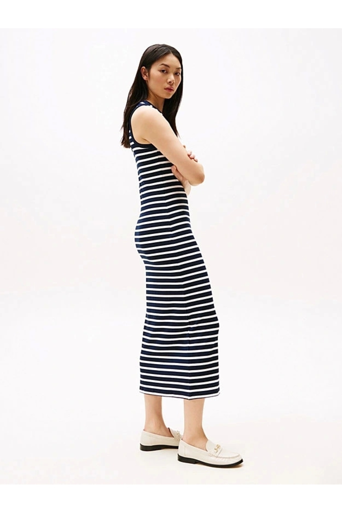 Kadın İnce Askılı Dar Midi Boy Saten Şık Gece Lacivert-Beyaz Elbise WW0WW38838-0X4 Kadın İnce Askılı Dar Midi Boy Saten Şık Gece Lacivert-Beyaz Elbise WW0WW38838-0X4 L