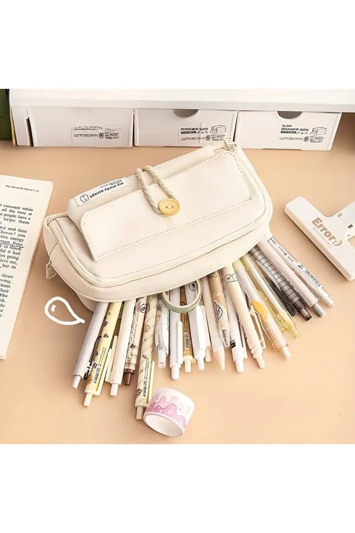 Geniş Ve Büyük Kapasiteli Kalem Kutusu, Makyaj Çantası Elde Taşınabilir Kalem Kutusu
