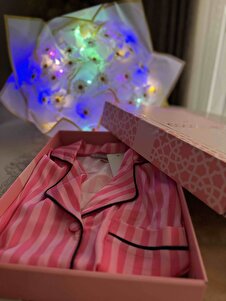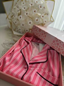Strisce Rosa Scuro Saten Kısa Pijama Takımı Strisce Rosa Scuro Saten Kısa Pijama Takımı 1504 XL