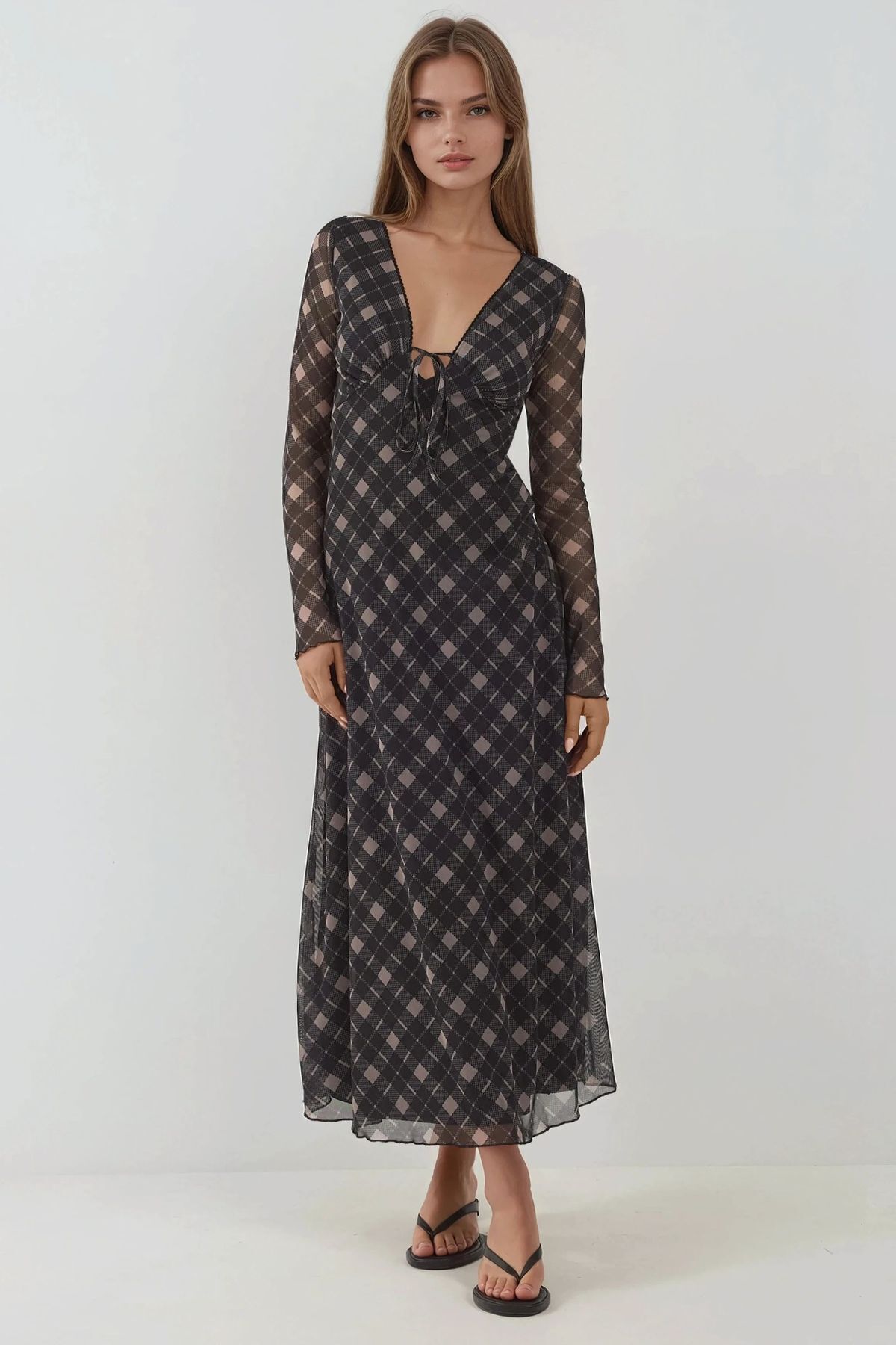 Puantiyeli Truvakar Kol Midi Elbise Puantiyeli Truvakar Kol Midi Elbise M6HTUB3I XXS