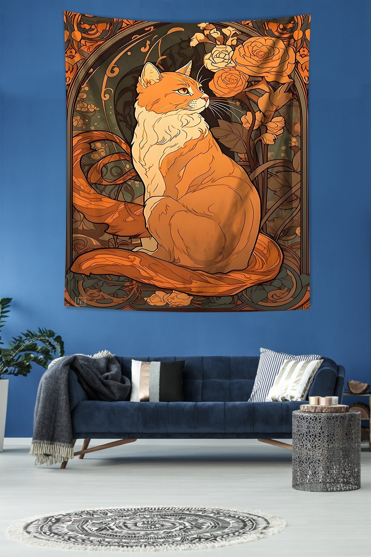 Gözü Kapalı Sevimli Kedi Desenli Leke Tutmaz Kumaş Duvar Örtüsü Duvar Halısı Tapestry Gözü Kapalı Sevimli Kedi Desenli Leke Tutmaz Kumaş Duvar Örtüsü Duvar Halısı Tapestry PNTRS37 140 x 230