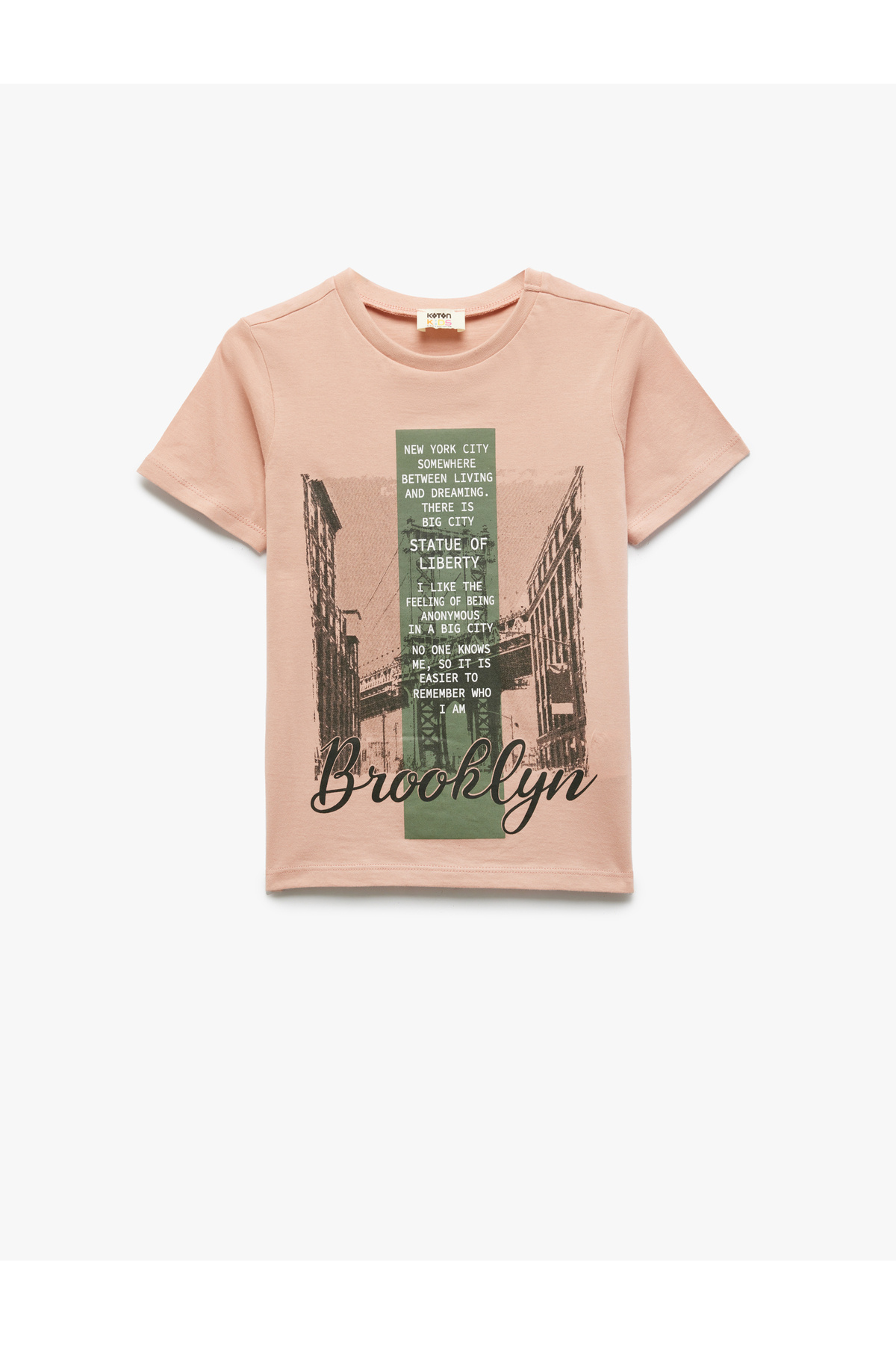 Pamuklu Bisiklet Yaka Kısa Kollu Baskılı Tişört Pamuklu Bisiklet Yaka Kısa Kollu Baskılı Tişört 5SKB10137TK 12 Yaş