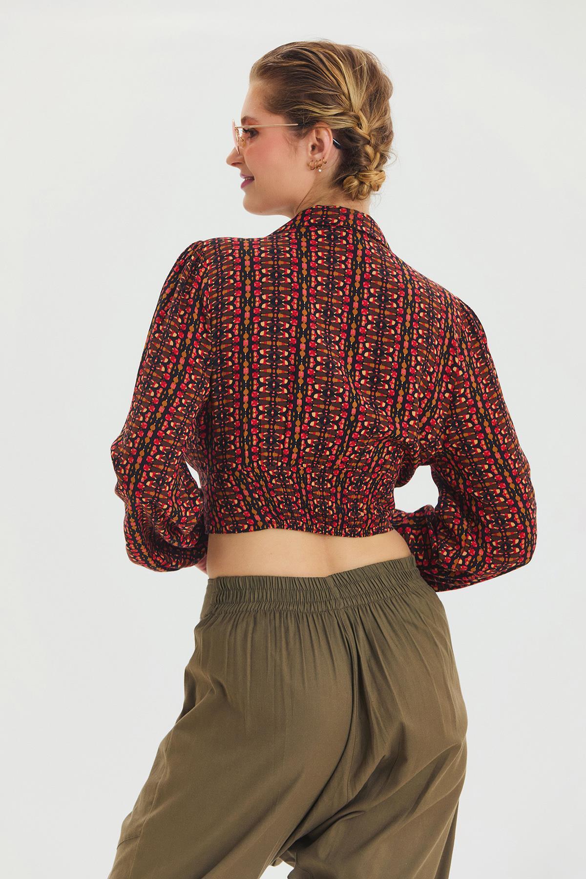 Gömlek Yaka Düğme Detaylı Crop Bluz Gömlek Yaka Düğme Detaylı Crop Bluz ULOS25SSBLOW.001_334 XL