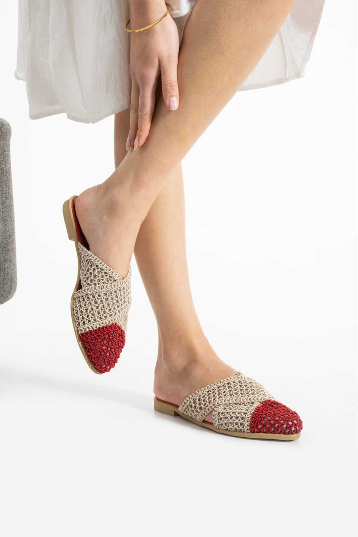 Kırmızı Örgülü Çapraz Kapalı Kadın Terlik Ev Ve Dış Mekan Terliği Kırmızı Örgülü Çapraz Kapalı Kadın Terlik Ev Ve Dış Mekan Terliği MD25014 40