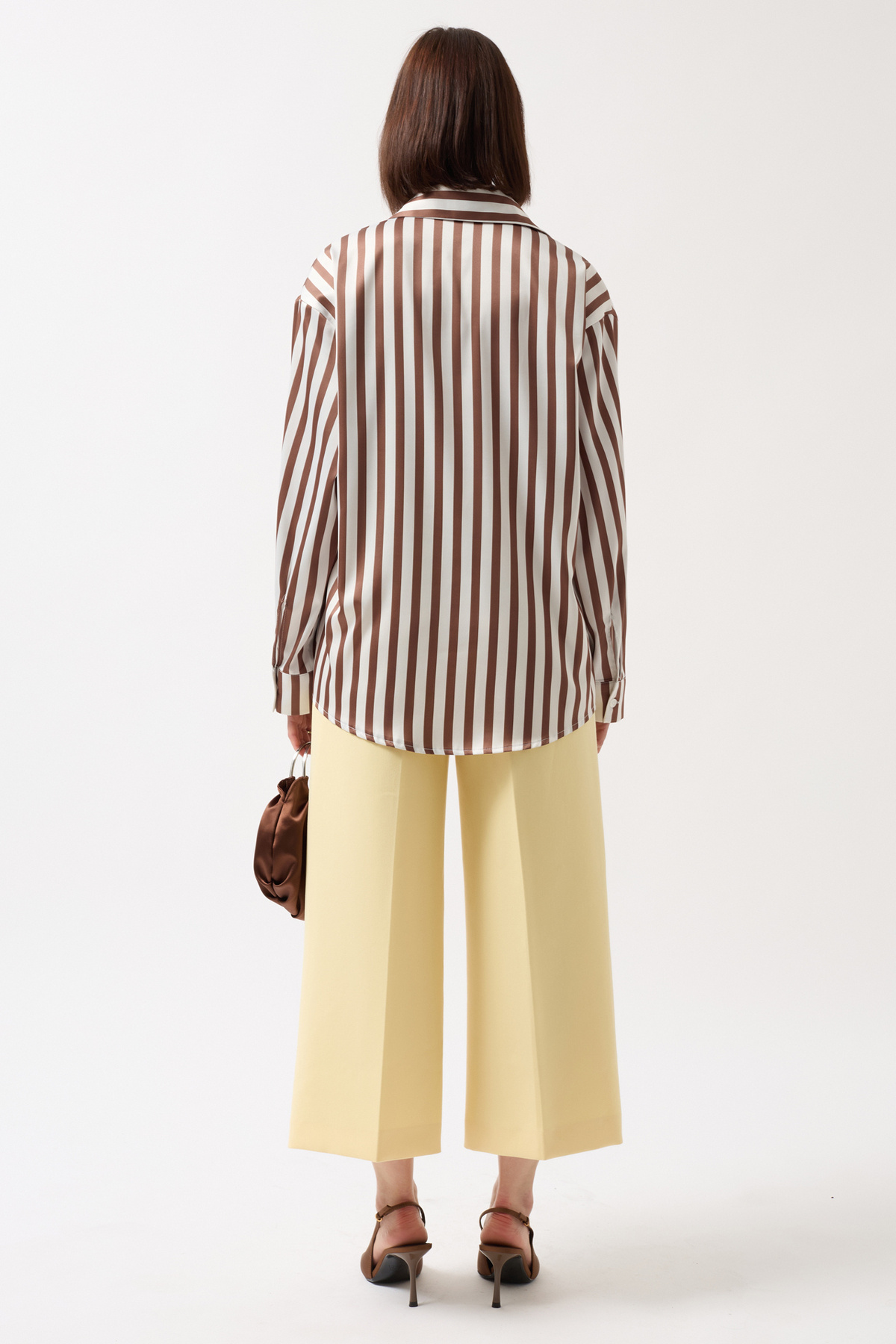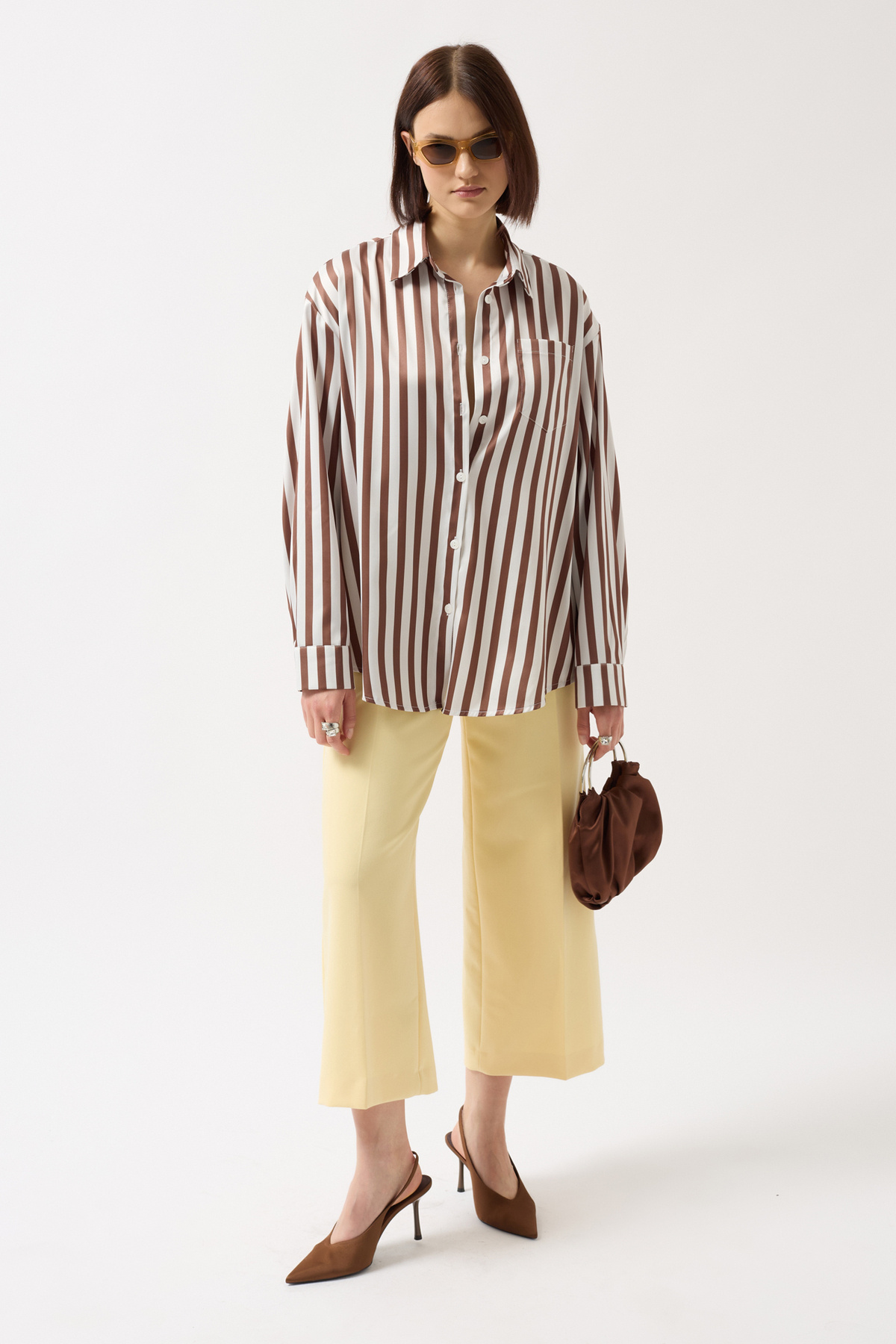 Çizgili Saten Kahverengi Gömlek Çizgili Saten Kahverengi Gömlek 52218023-1019 L
