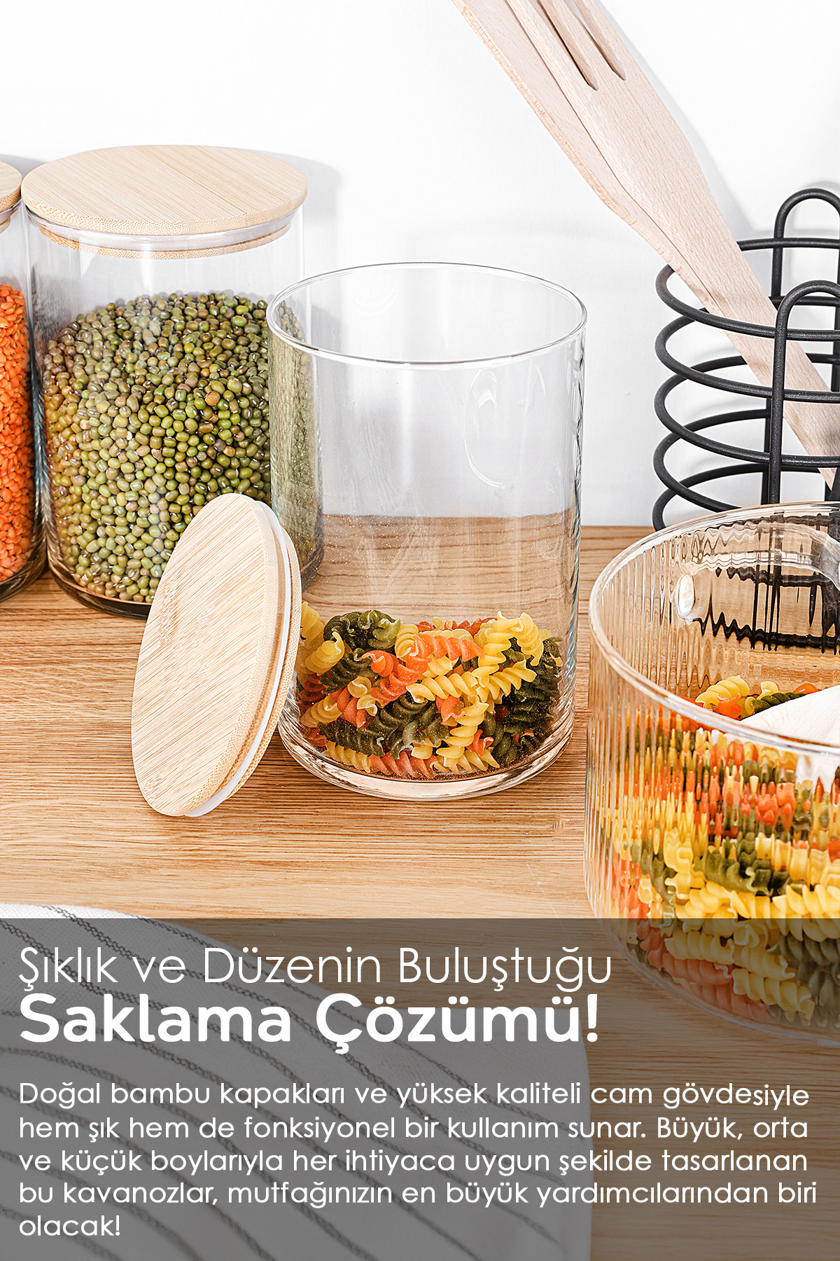 3'lü Bambu Kapak Cam Saklama Kabı - Etiketli Vakum Kapaklı Bakliyat Erzak Cam Kavanoz Seti 1050 ml 3'lü Bambu Kapak Cam Saklama Kabı - Etiketli Vakum Kapaklı Bakliyat Erzak Cam Kavanoz Seti 1050 ml MCH-2758 تک سایز