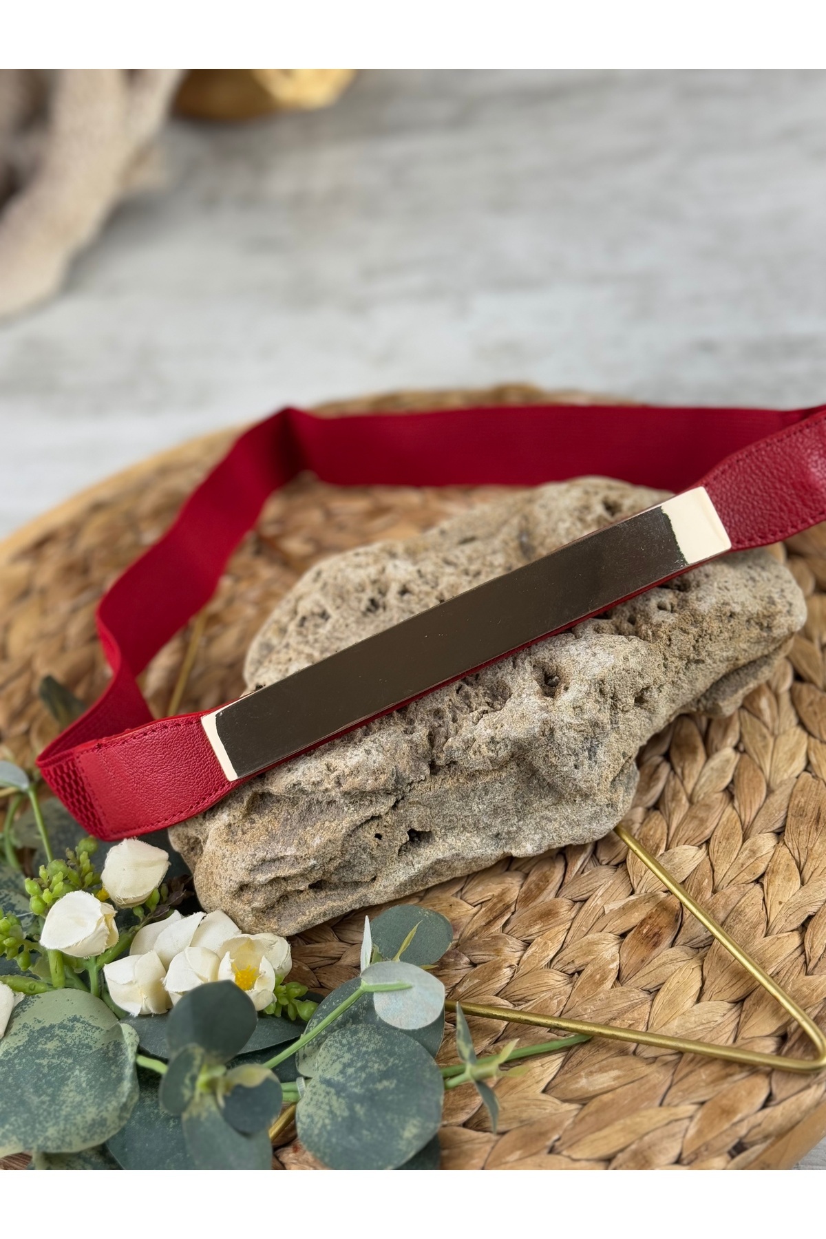 Gold tokalı kırmızı lastikli kemer Gold tokalı kırmızı lastikli kemer kemm106 M