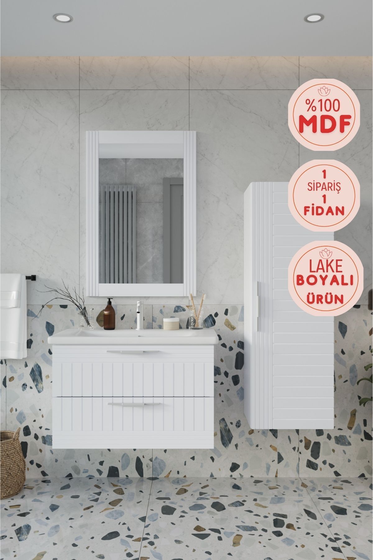 Reyhan 80 cm %100 Mdf Lavabolu Banyo Dolabı + Ayna Reyhan 80 cm %100 Mdf Lavabolu Banyo Dolabı + Ayna REYHAN 80 CM تک سایز
