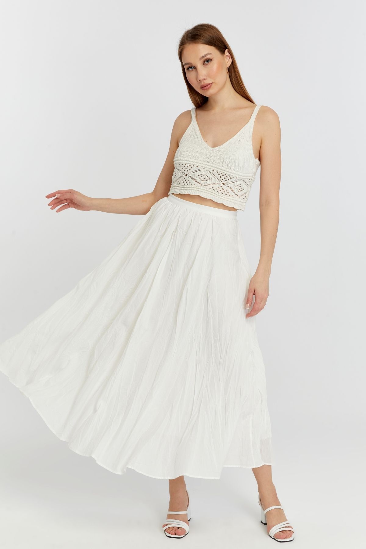 Faylinn Pileli Uzun Ekru Etek Faylinn Pileli Uzun Ekru Etek B10M3480W1 L