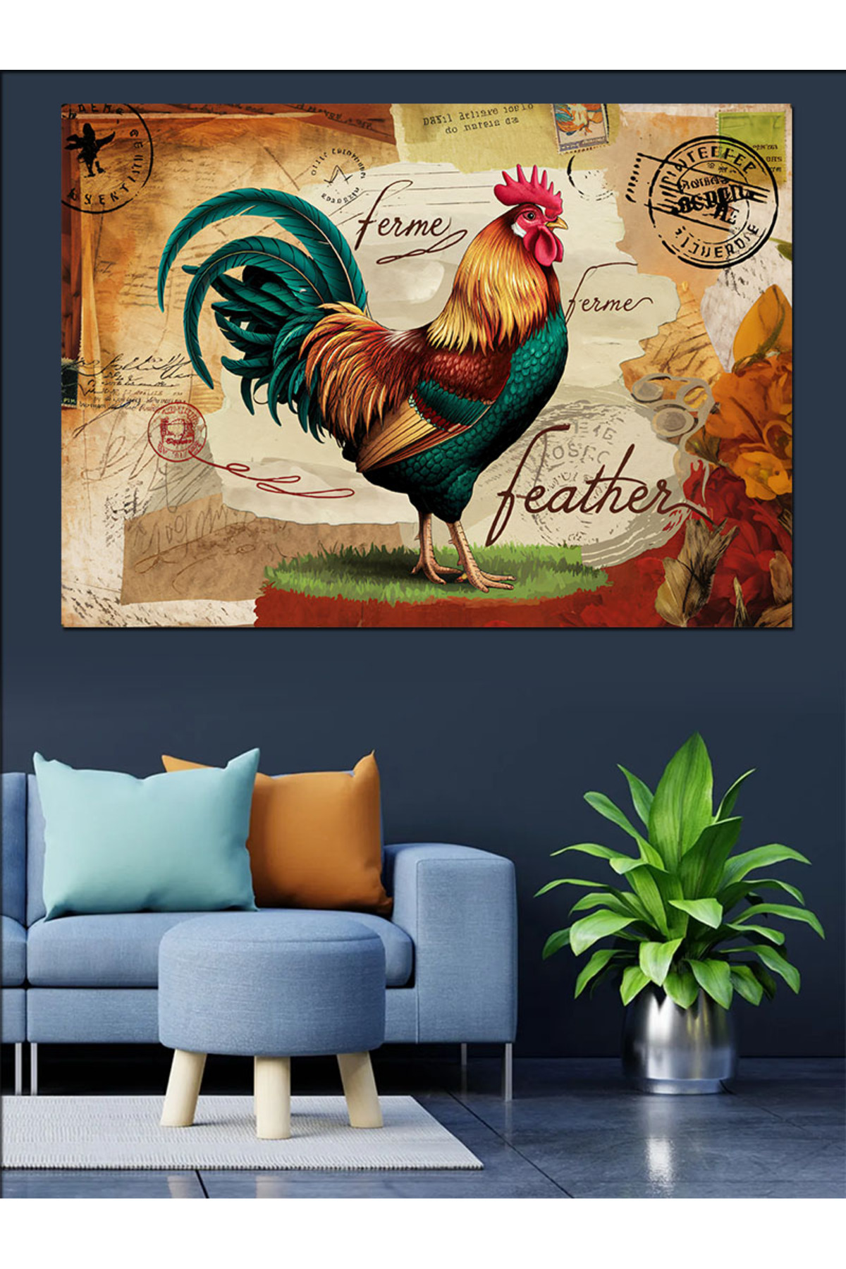 Horoz Ve Tüy Deseni Dekoratif Kanvas - Mdf Ahşap Tablo Horoz Ve Tüy Deseni Dekoratif Kanvas - Mdf Ahşap Tablo YTACNVS501532 100 x 140