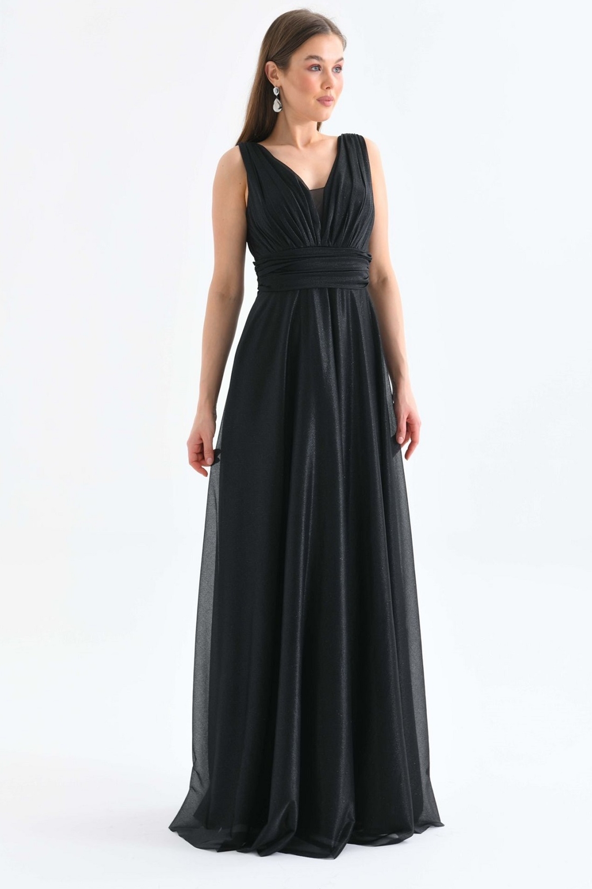 Pul Payet Kalın Askılı Balık Abiye Elbise - SİYAH Pul Payet Kalın Askılı Balık Abiye Elbise - SİYAH GYM-3006 50