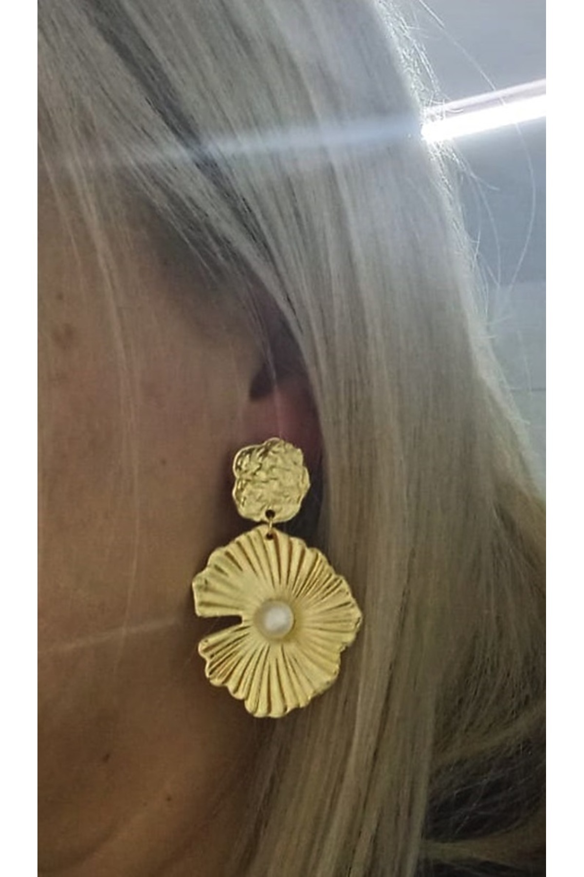 Gold İncili Büyük Sallantılı Şık Kadın Küpe Gold İncili Büyük Sallantılı Şık Kadın Küpe BER.2002 تک سایز