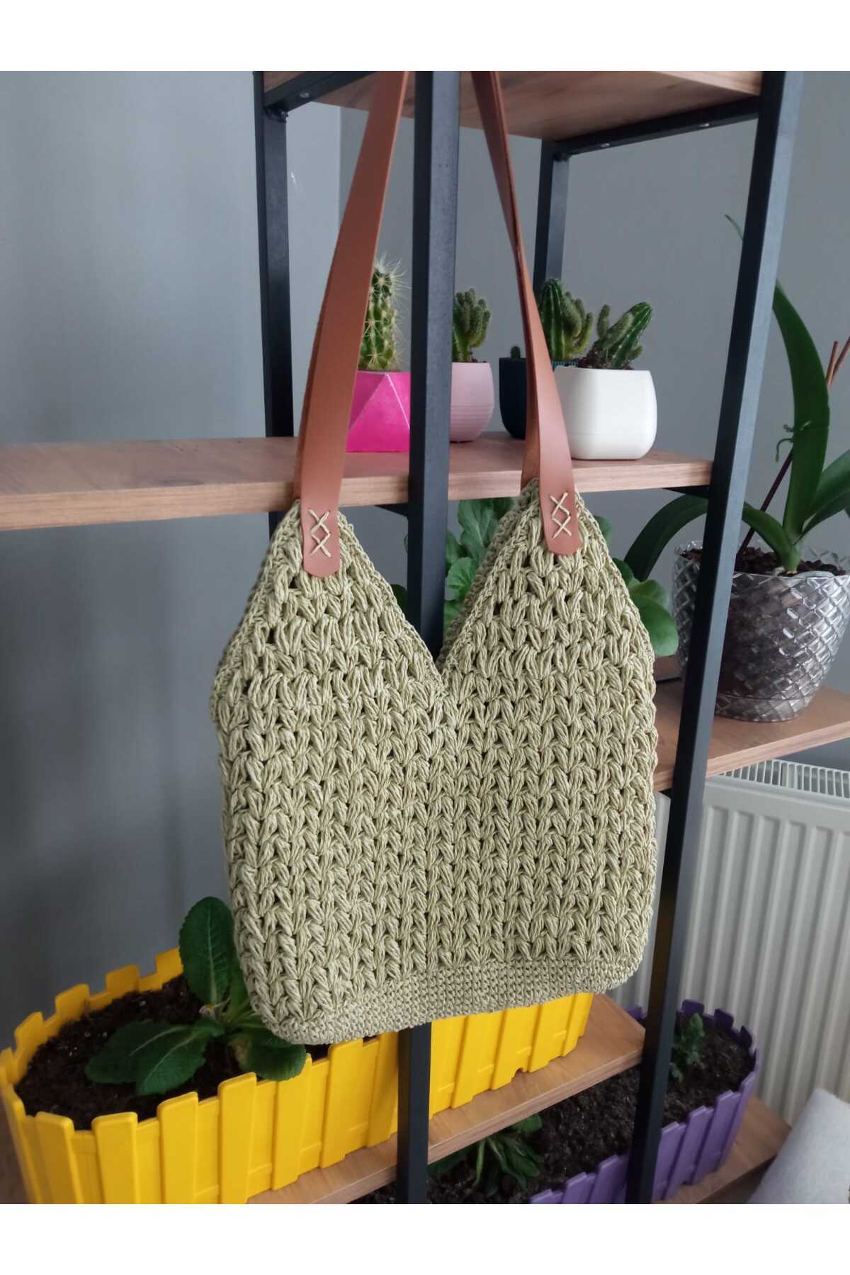 kağıt ip el örgüsü çanta kağıt ip el örgüsü çanta kağıt ip omuz çantası Orta Boy