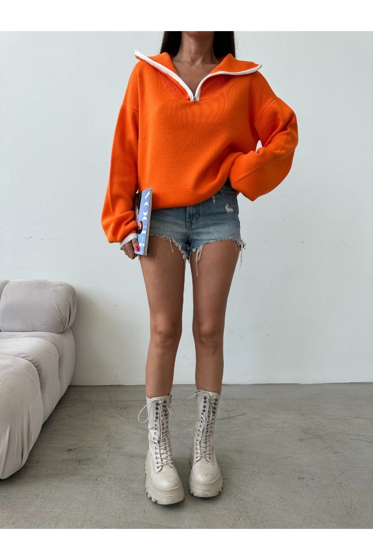 Çizgili Triko Kazak Turuncu Beyaz Şeritli Çizgili Triko Kazak Turuncu Beyaz Şeritli PRA-12471285-0275 Standart