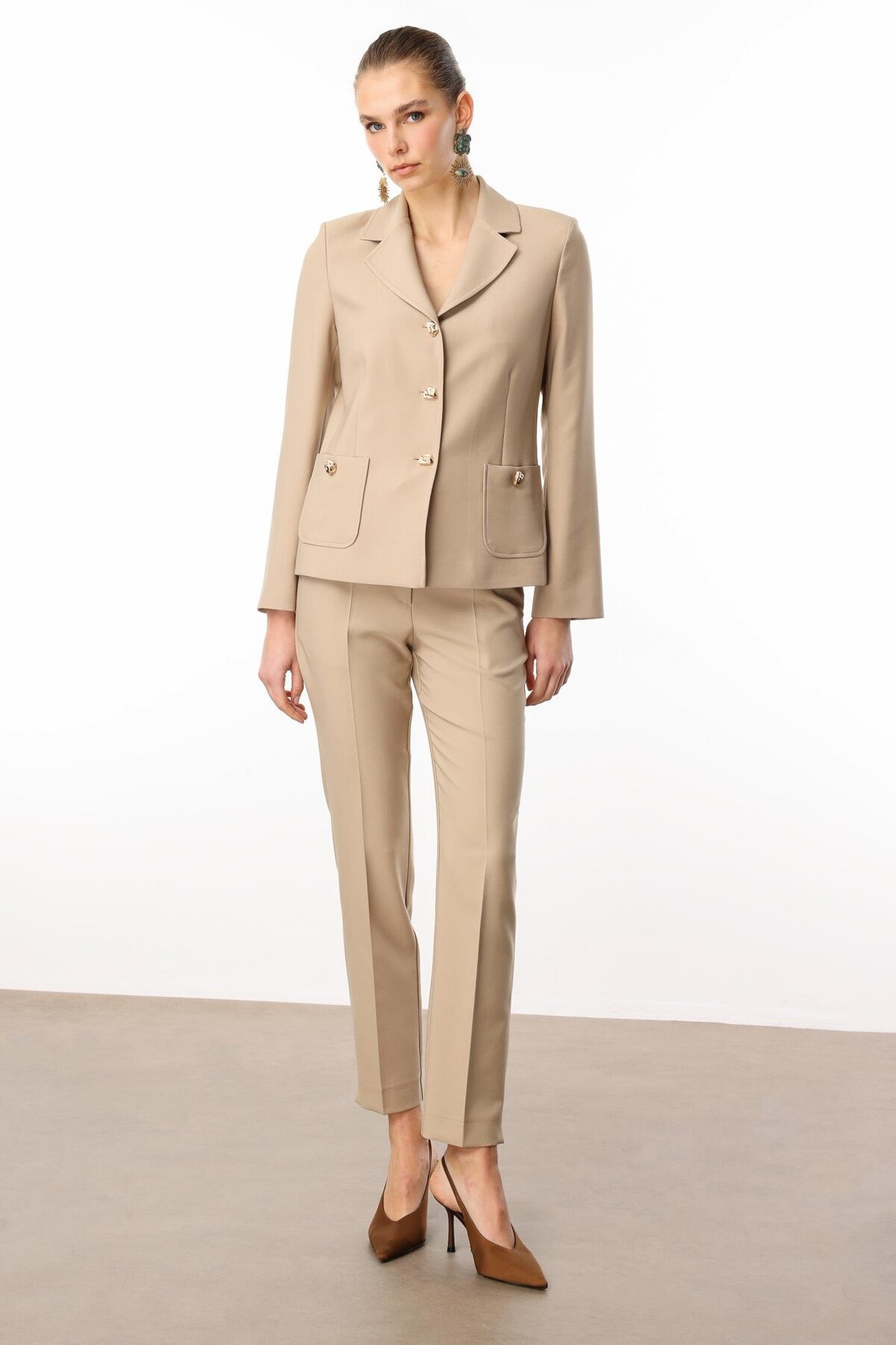 Modailgi Torba Cepli Mono Yaka Yarım Astarlı Ceket - 4695 Taş Modailgi Torba Cepli Mono Yaka Yarım Astarlı Ceket - 4695 Taş ILG251CKT07615 46