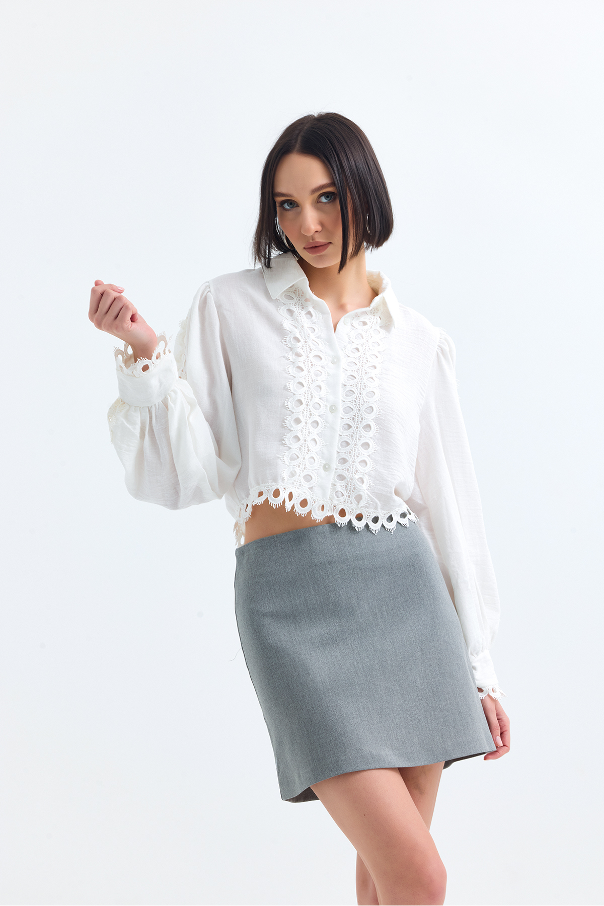 Kadın Fisto Dantelli Keten Crop Gömlek 1411 60284001 Kadın Fisto Dantelli Keten Crop Gömlek 1411 60284001 40