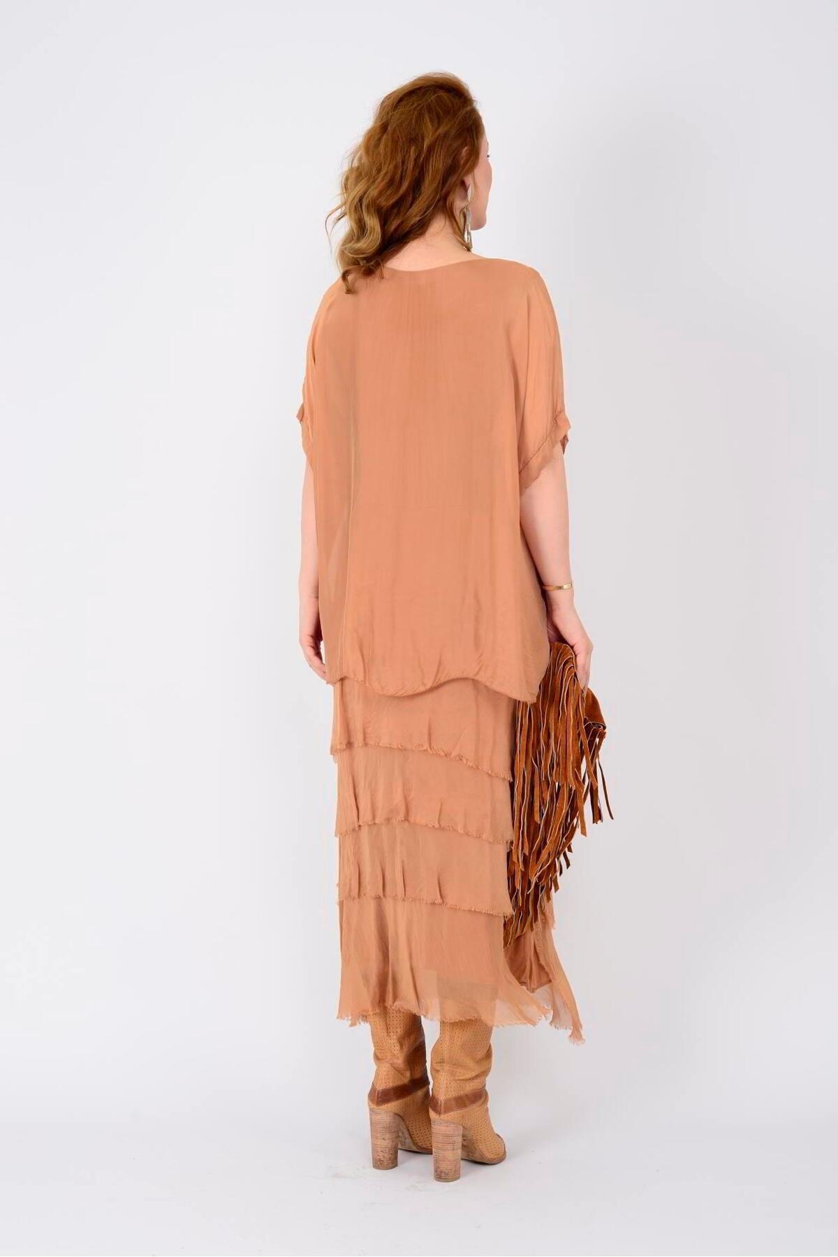 İtalyan 2 Beden İnce Gösteren Yarım Kol Kat Kat Ipek Elbise İtalyan 2 Beden İnce Gösteren Yarım Kol Kat Kat Ipek Elbise BHMSTL2388 Standart