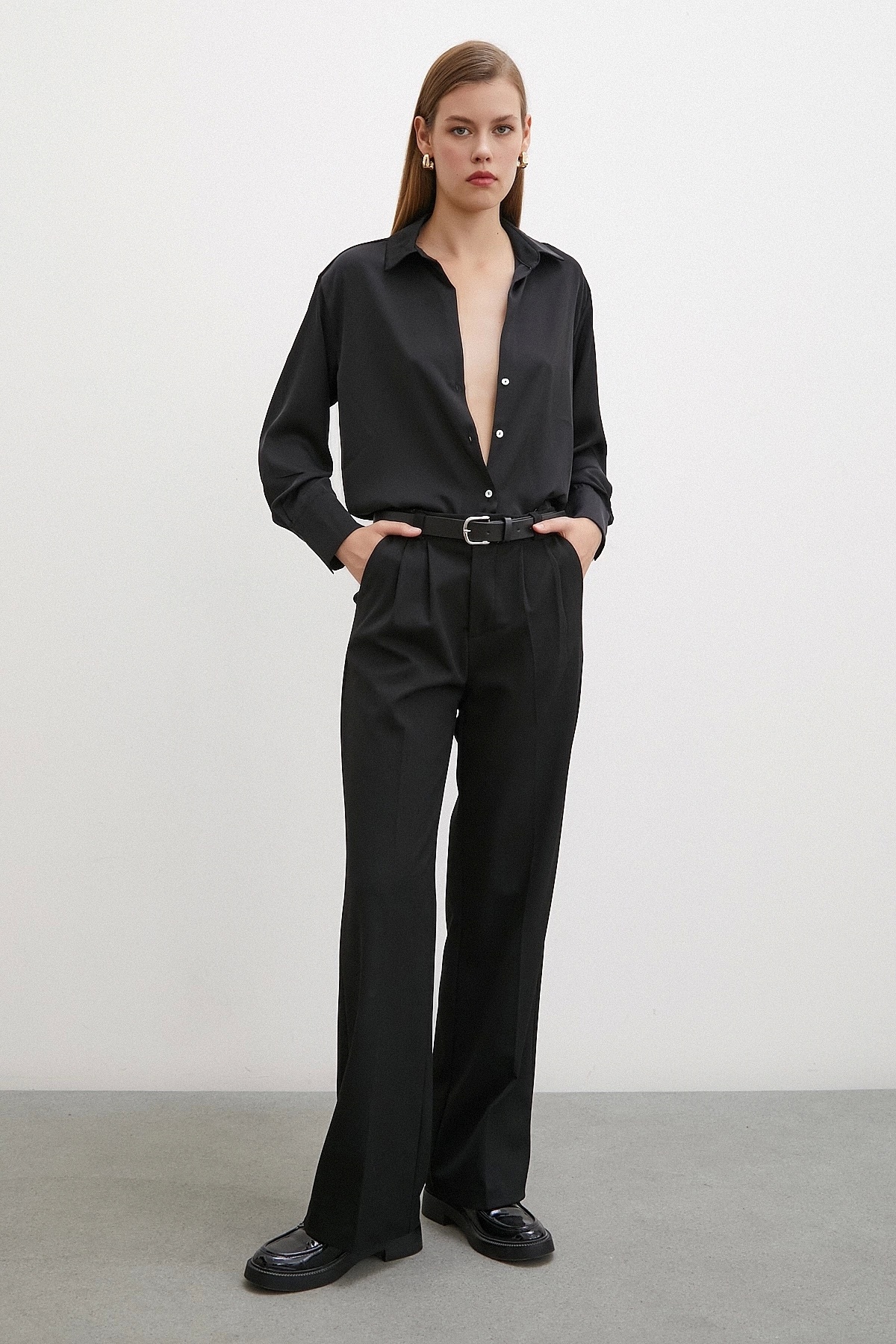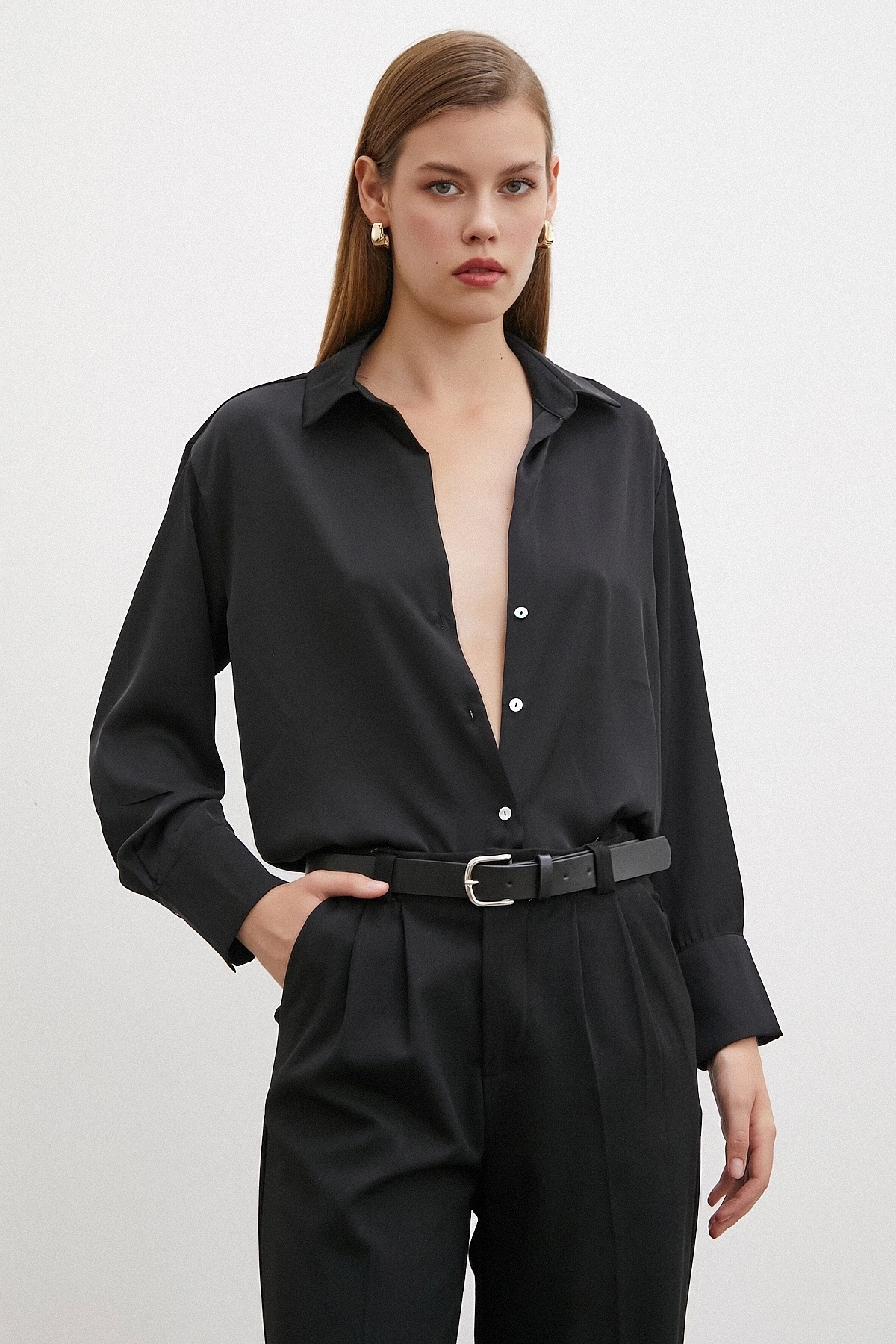 Klasik Saten Gömlek Siyah Klasik Saten Gömlek Siyah BLR24S101801 L