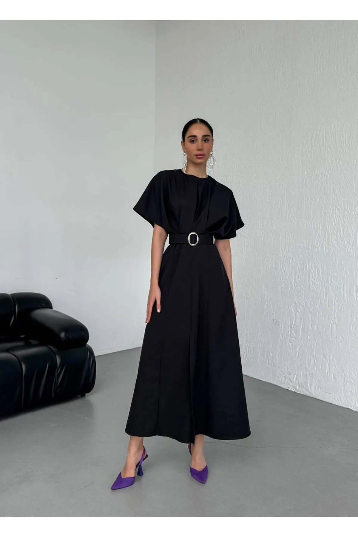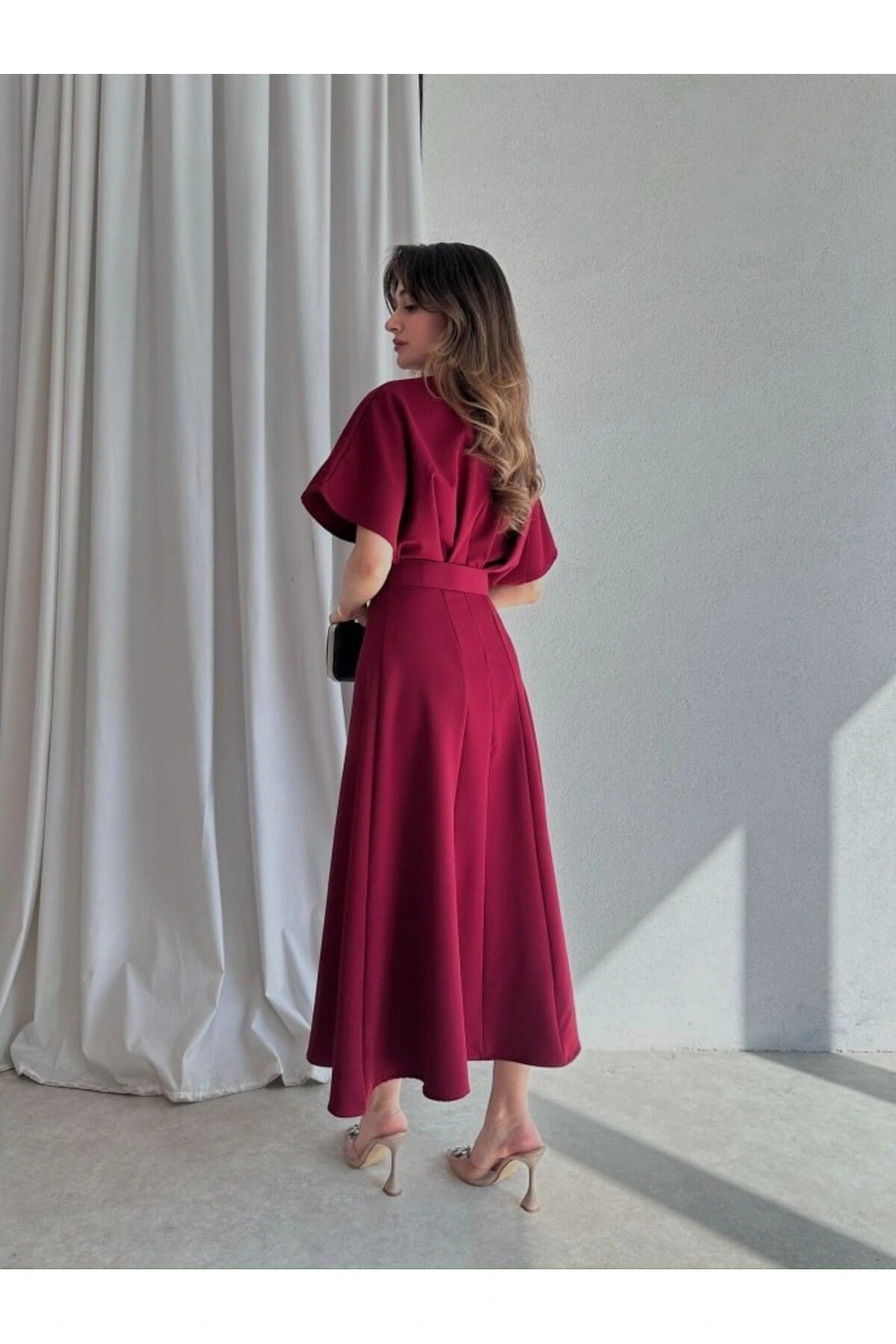 Bordo Kemer Detaylı Midi Elbise Bordo Kemer Detaylı Midi Elbise 2056 XL