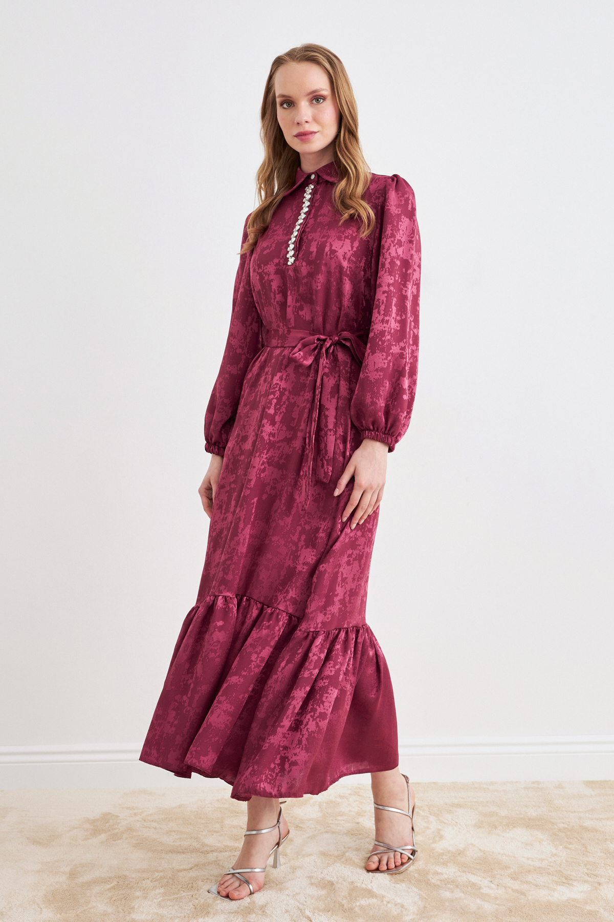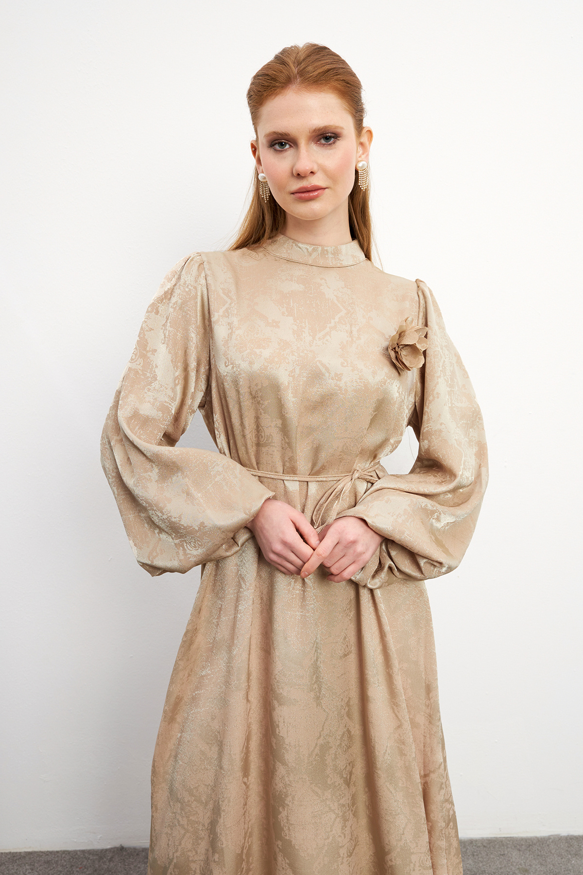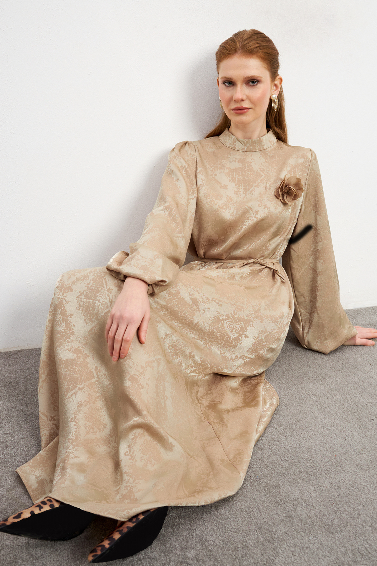 Gül Detaylı Jakar Elbise - Bej Gül Detaylı Jakar Elbise - Bej ZRFTST1849 50
