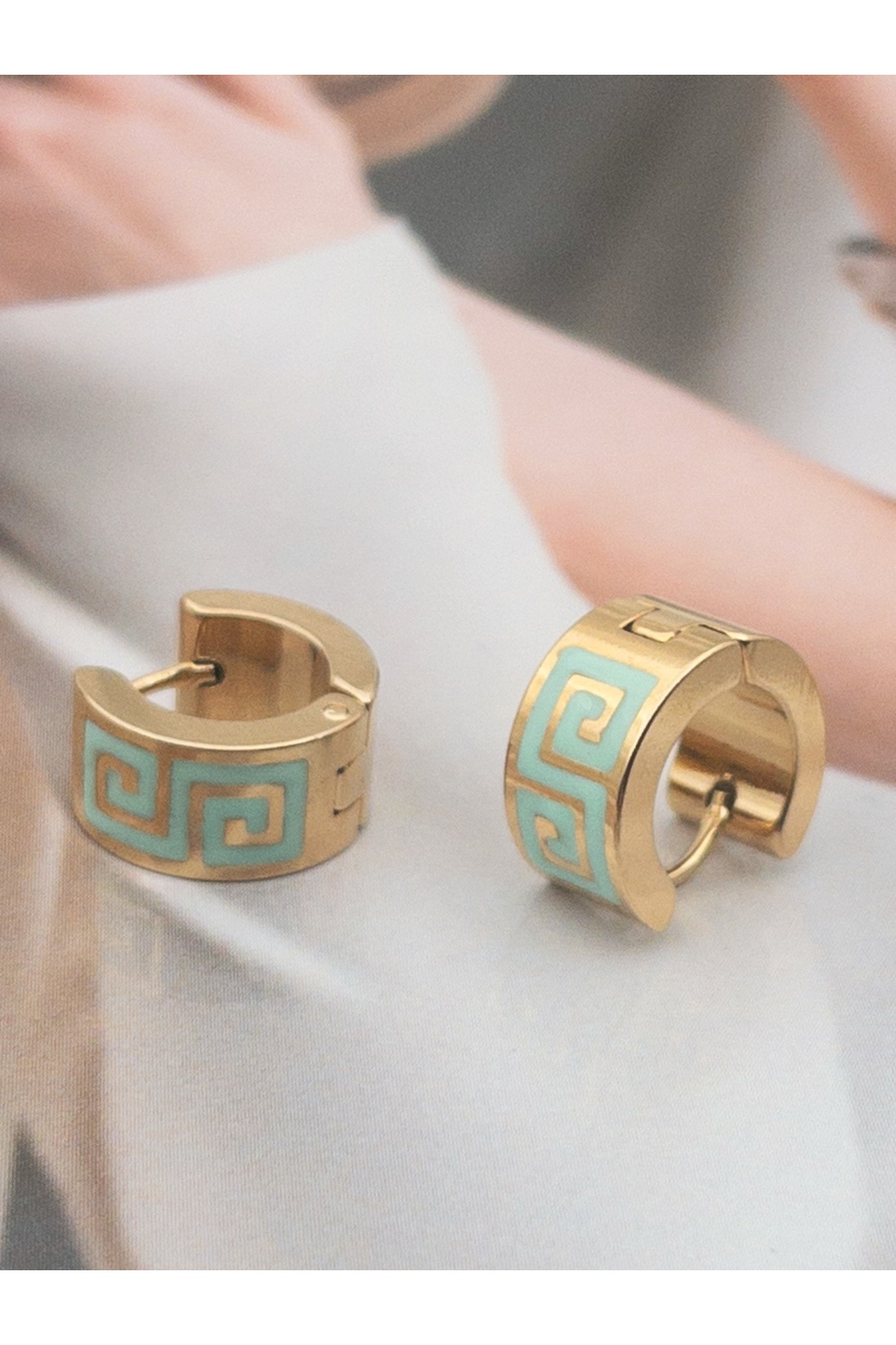 Renkli Mineli Desenli Unisex Çelik Halka Küpe-1,3 cm Renkli Mineli Desenli Unisex Çelik Halka Küpe-1,3 cm SYKP1367 تک سایز