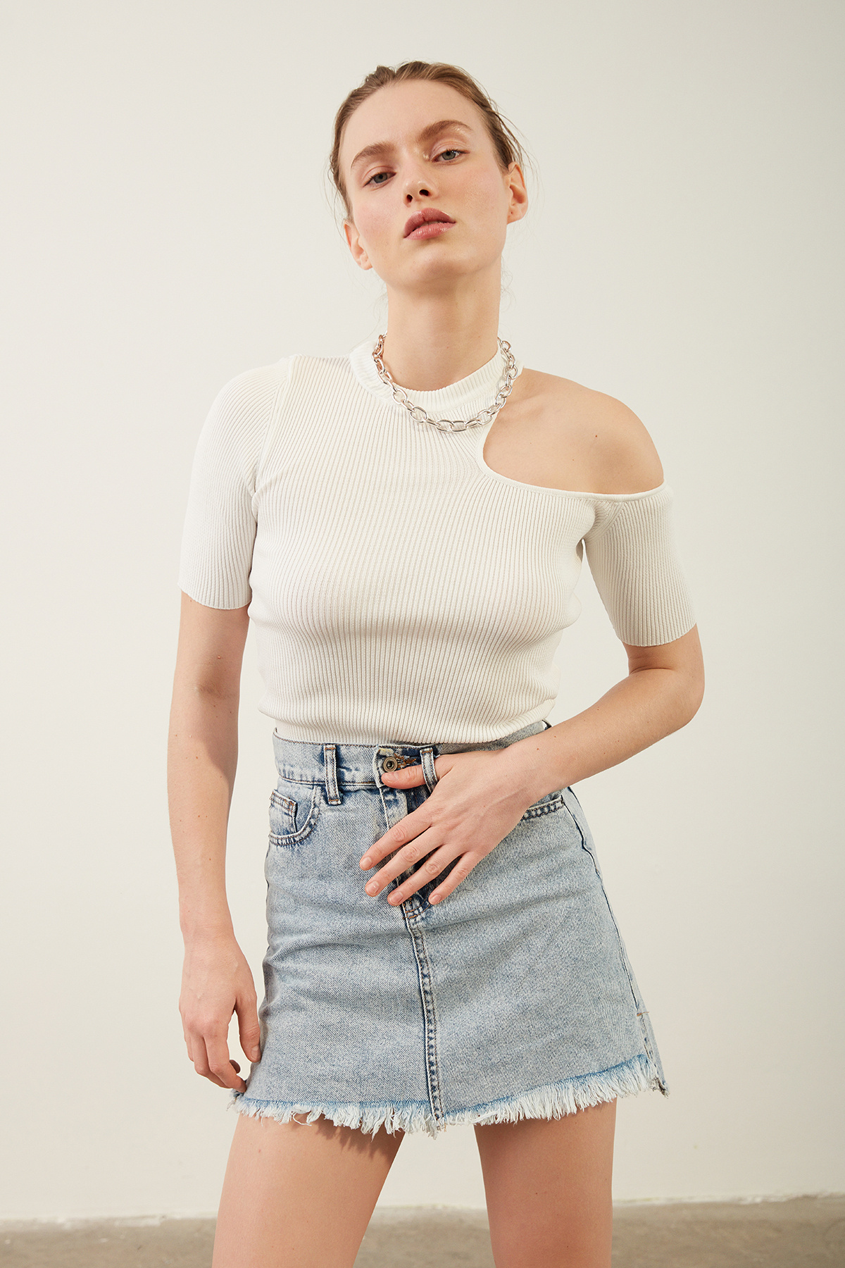 Açık Mavi Yırtmaç Detaylı Etek Açık Mavi Yırtmaç Detaylı Etek ACTJ2294 L